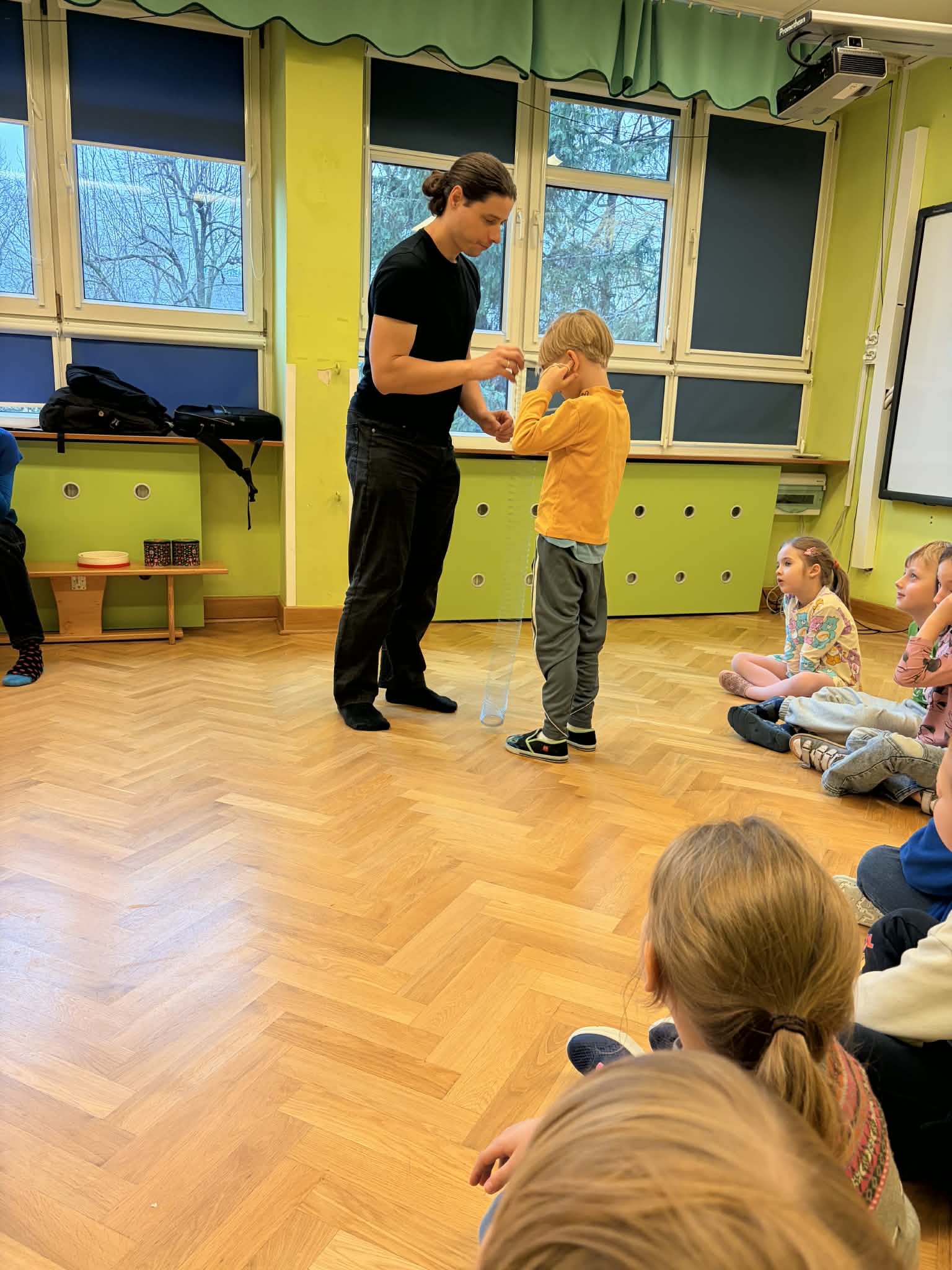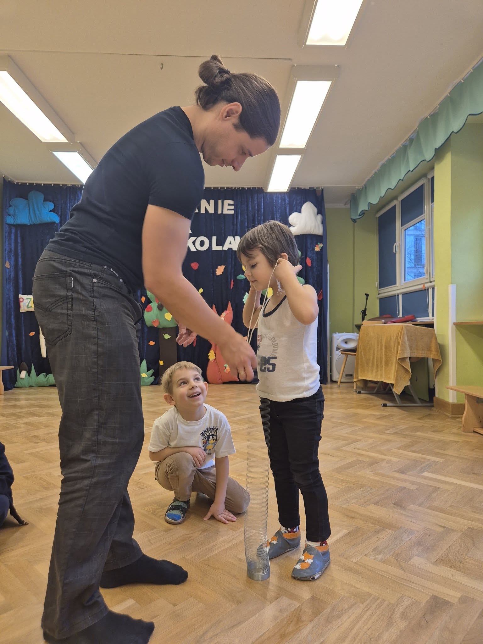 Tym razem dzieci odkrywały tajemnice ucha i słuchu. Podczas wielu ciekawych doświadczeń mogły: