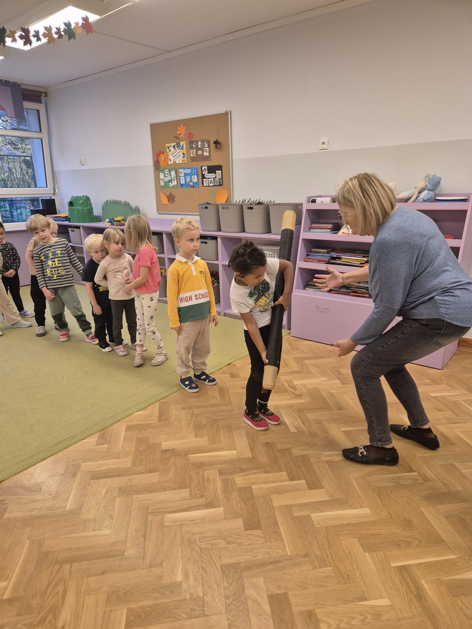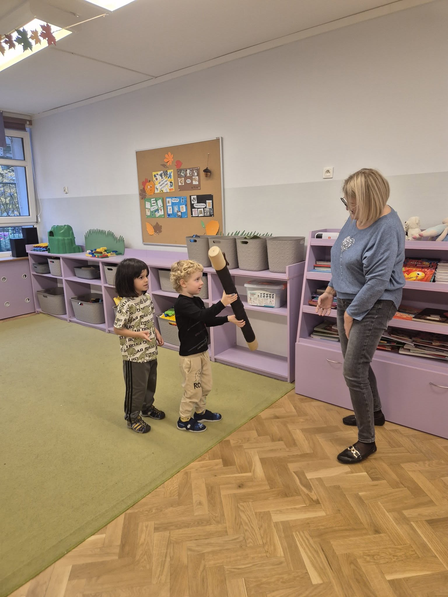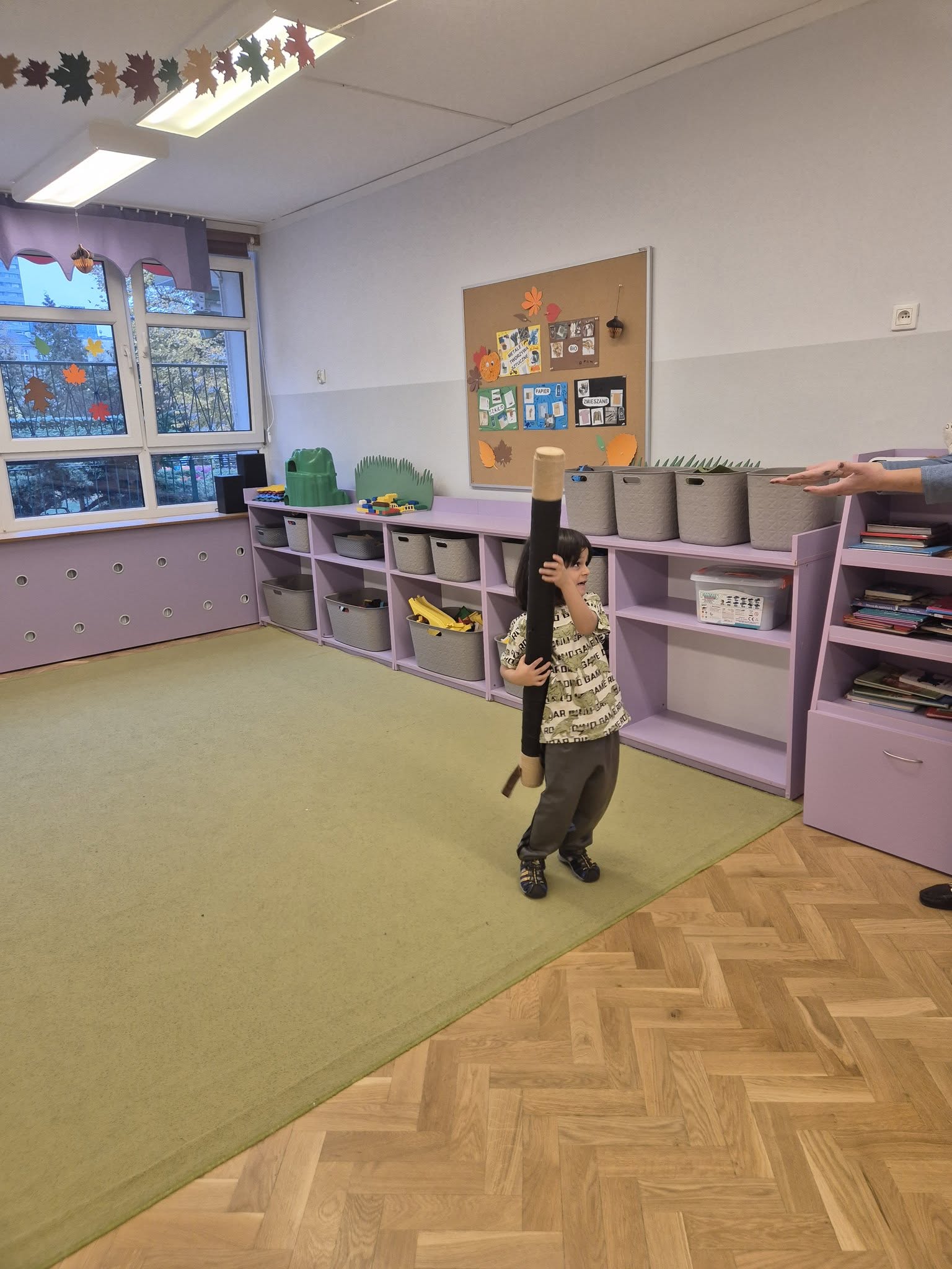 Dzieci świetnie się bawiły i z ogromnym zainteresowaniem poznawały nowy instrument – kij deszczowy.