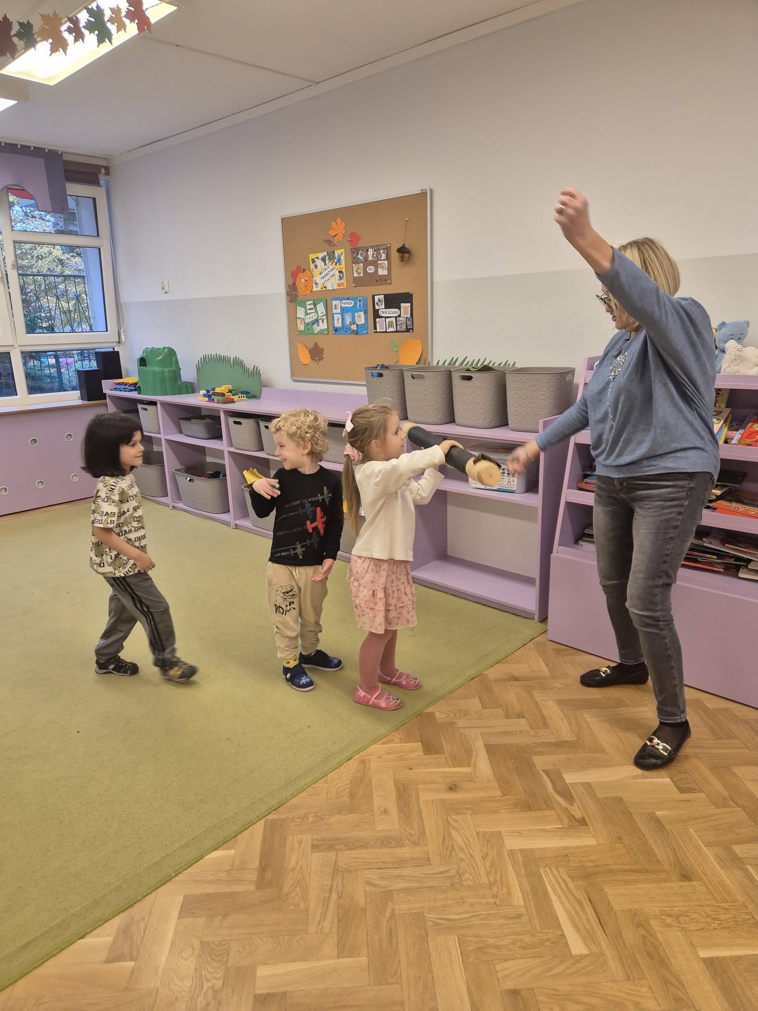 Podczas dzisiejszych zabaw grupę Figle Migle odwiedziła Pani Dyrektor.