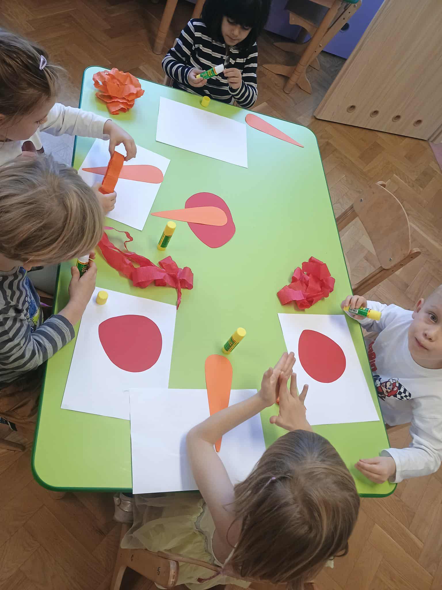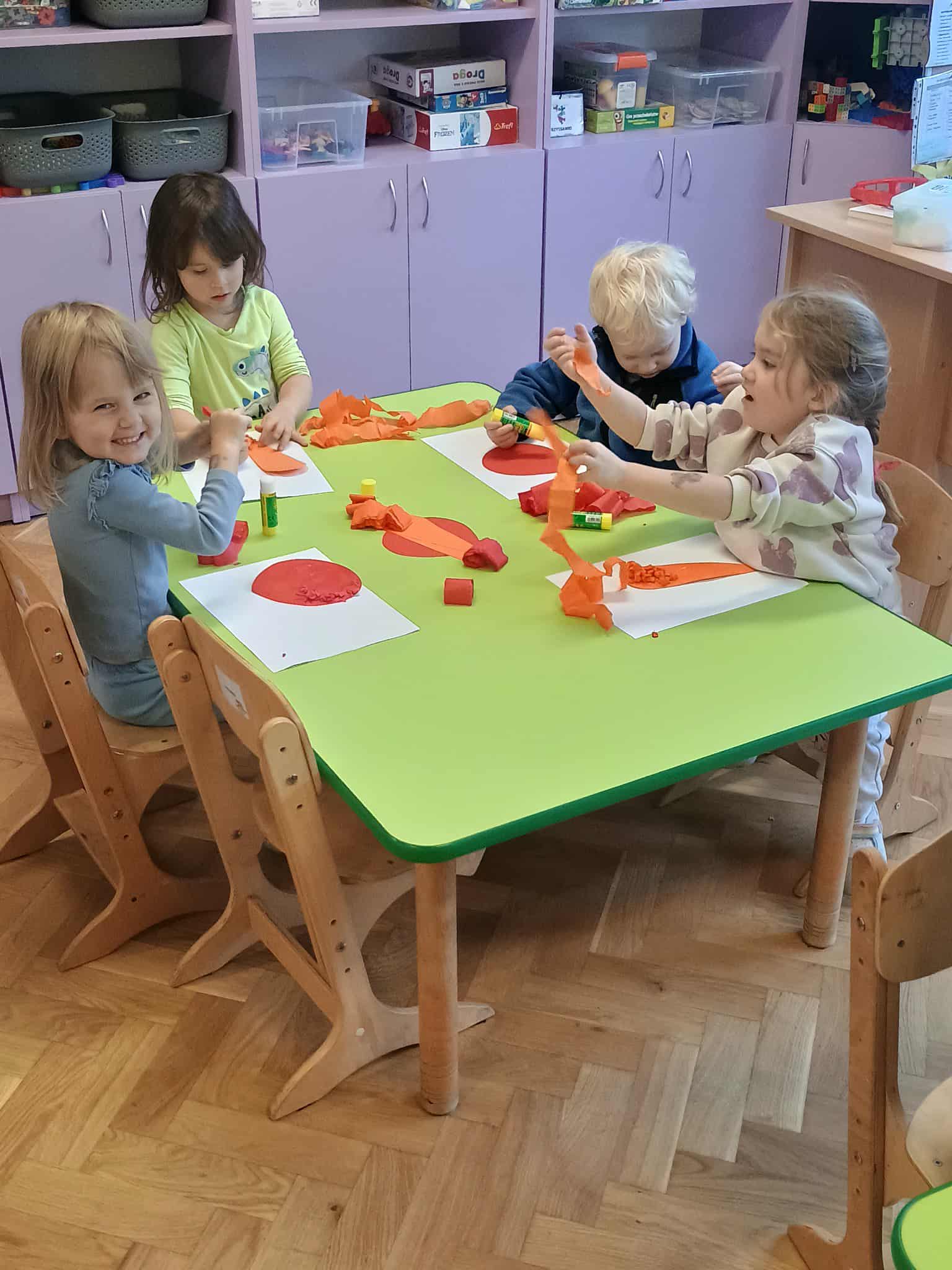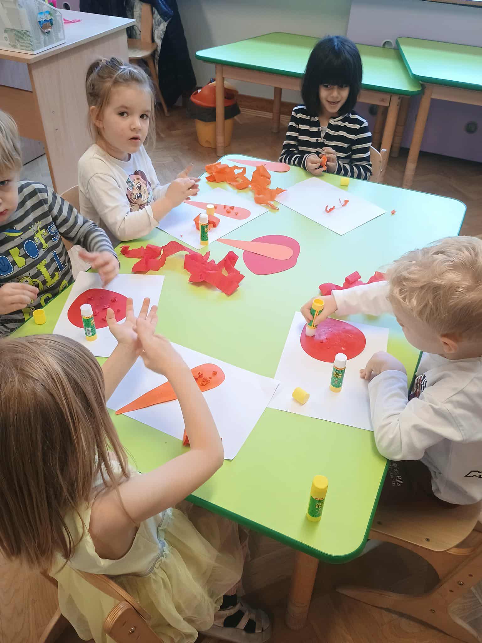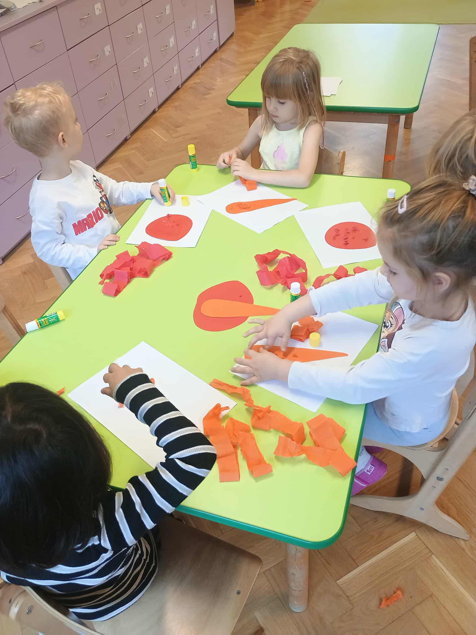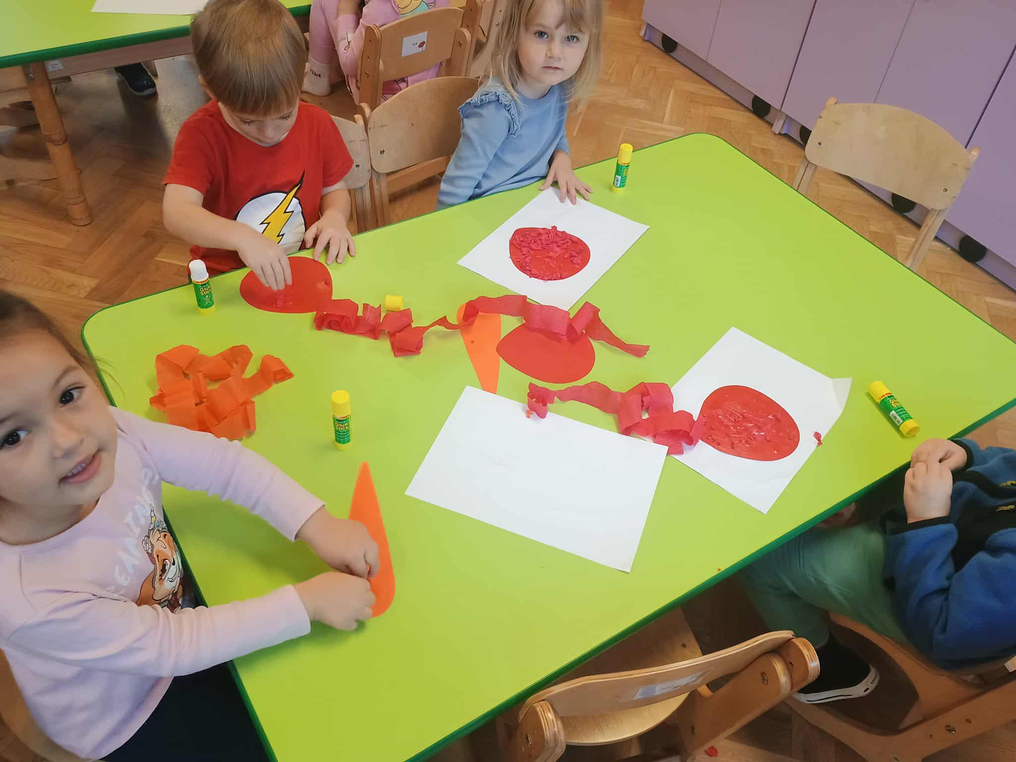 Dzieci rozwijały sprawność manualną i koordynację wzrokowo-ruchową, tworząc jesienne prace plastyczne z kolorowego papieru. ️