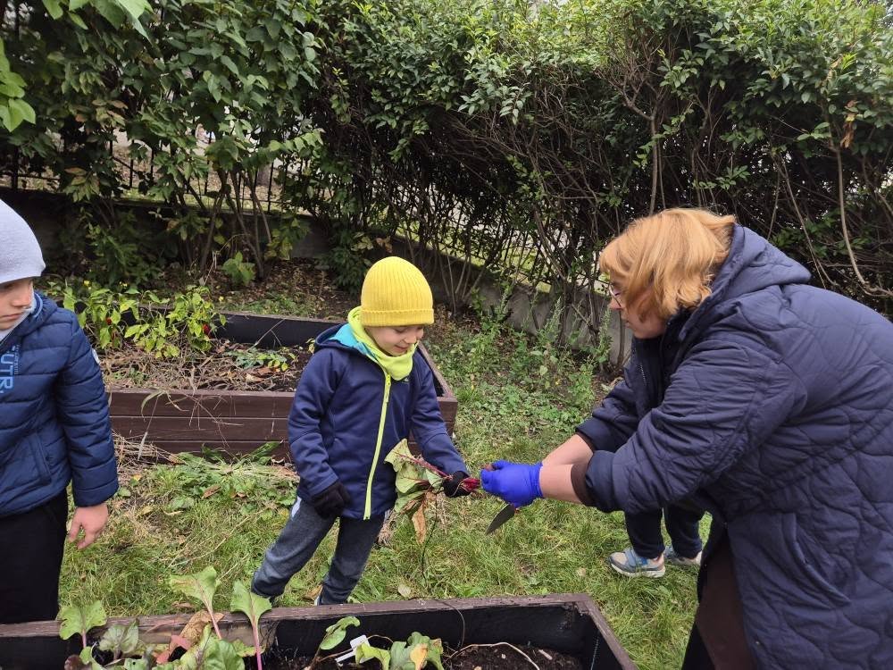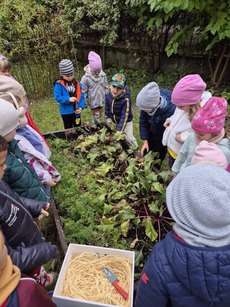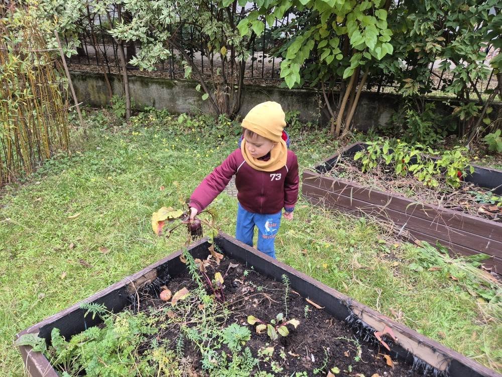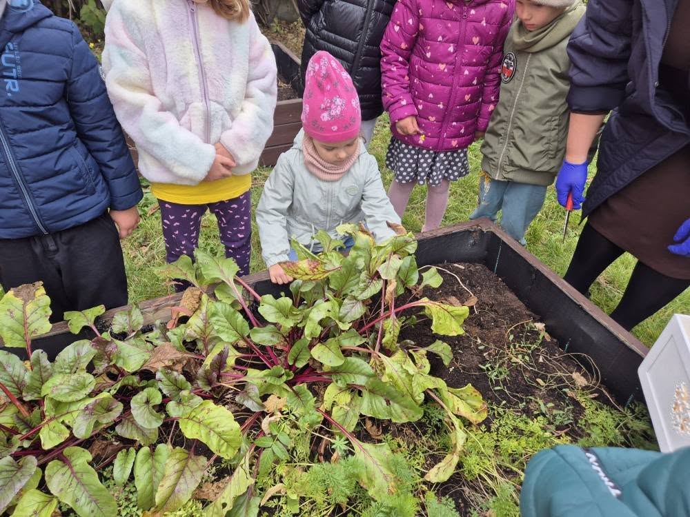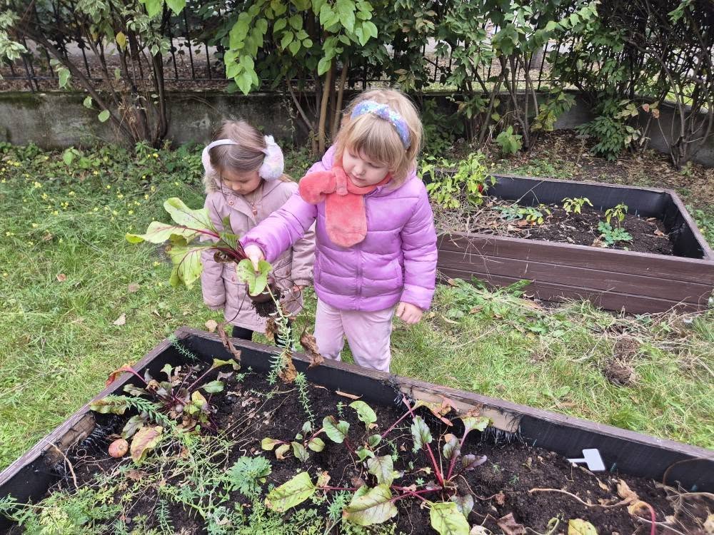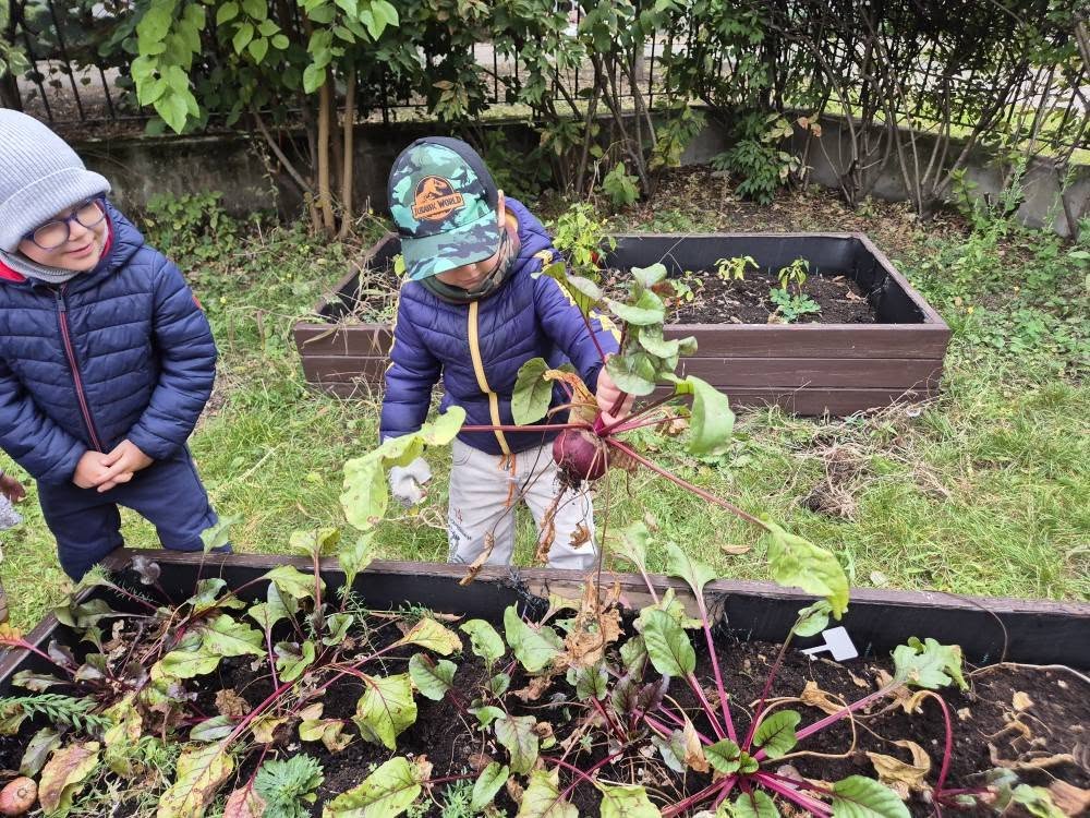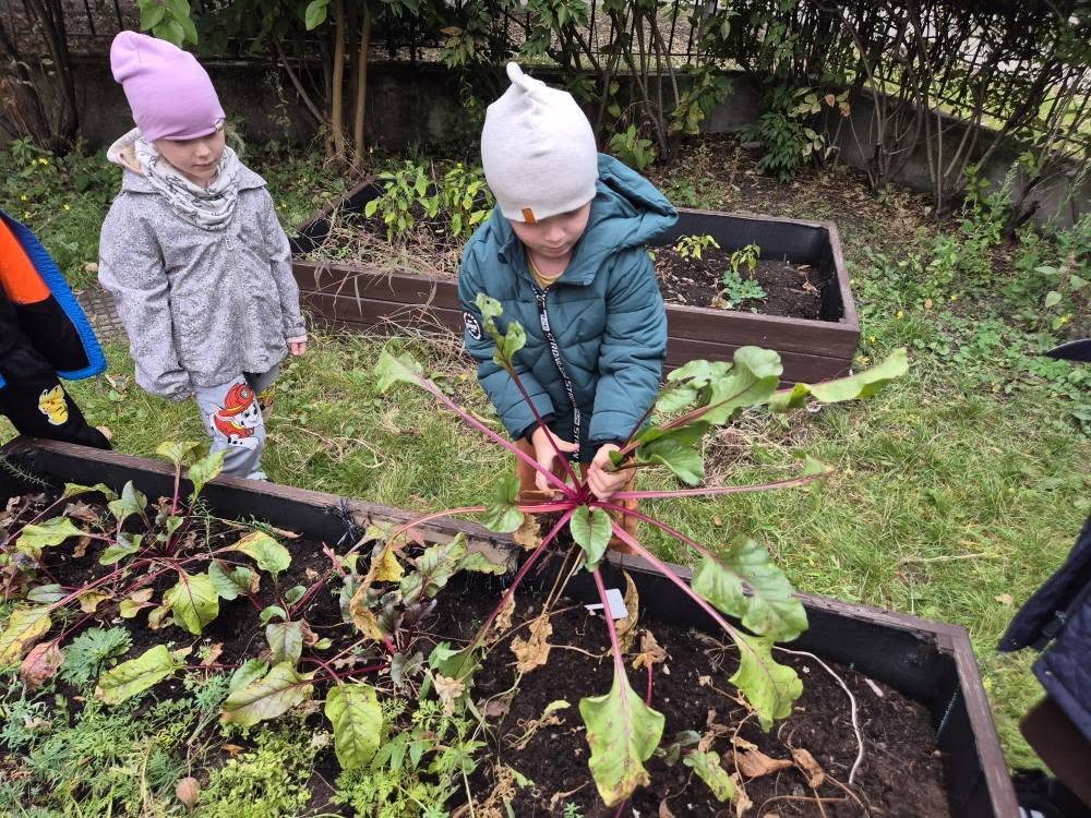 Nie zabrakło też lekcji o dbaniu o przyrodę – chwasty i niejadalne części roślin powędrowały prosto do kompostownika, żeby w przyszłym roku znów użyźnić ziemię.