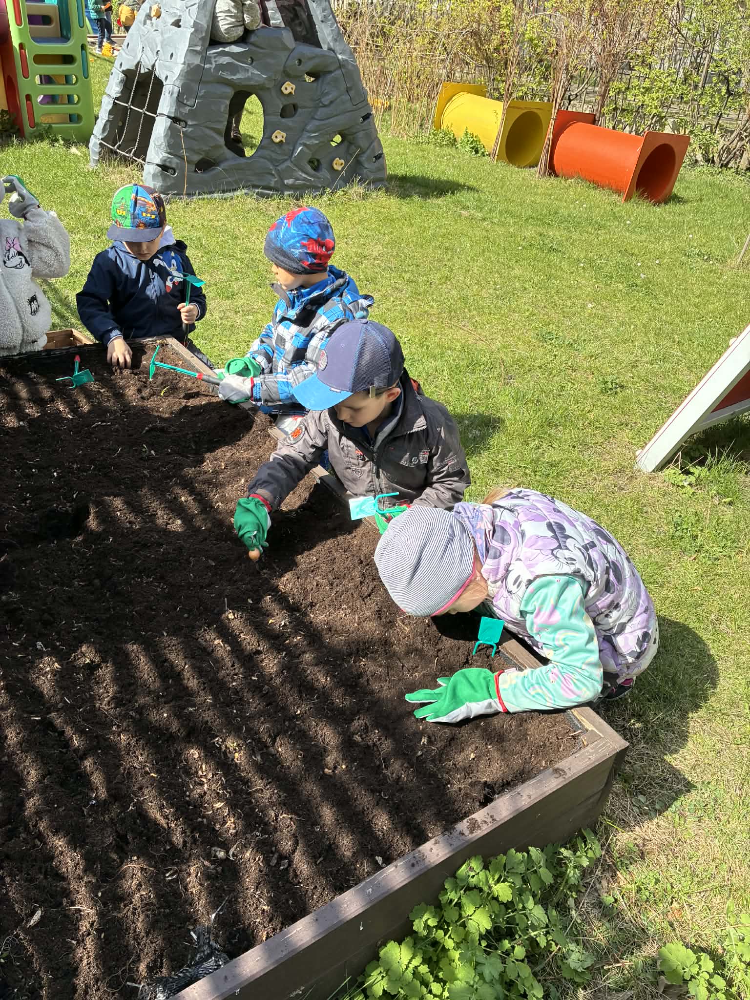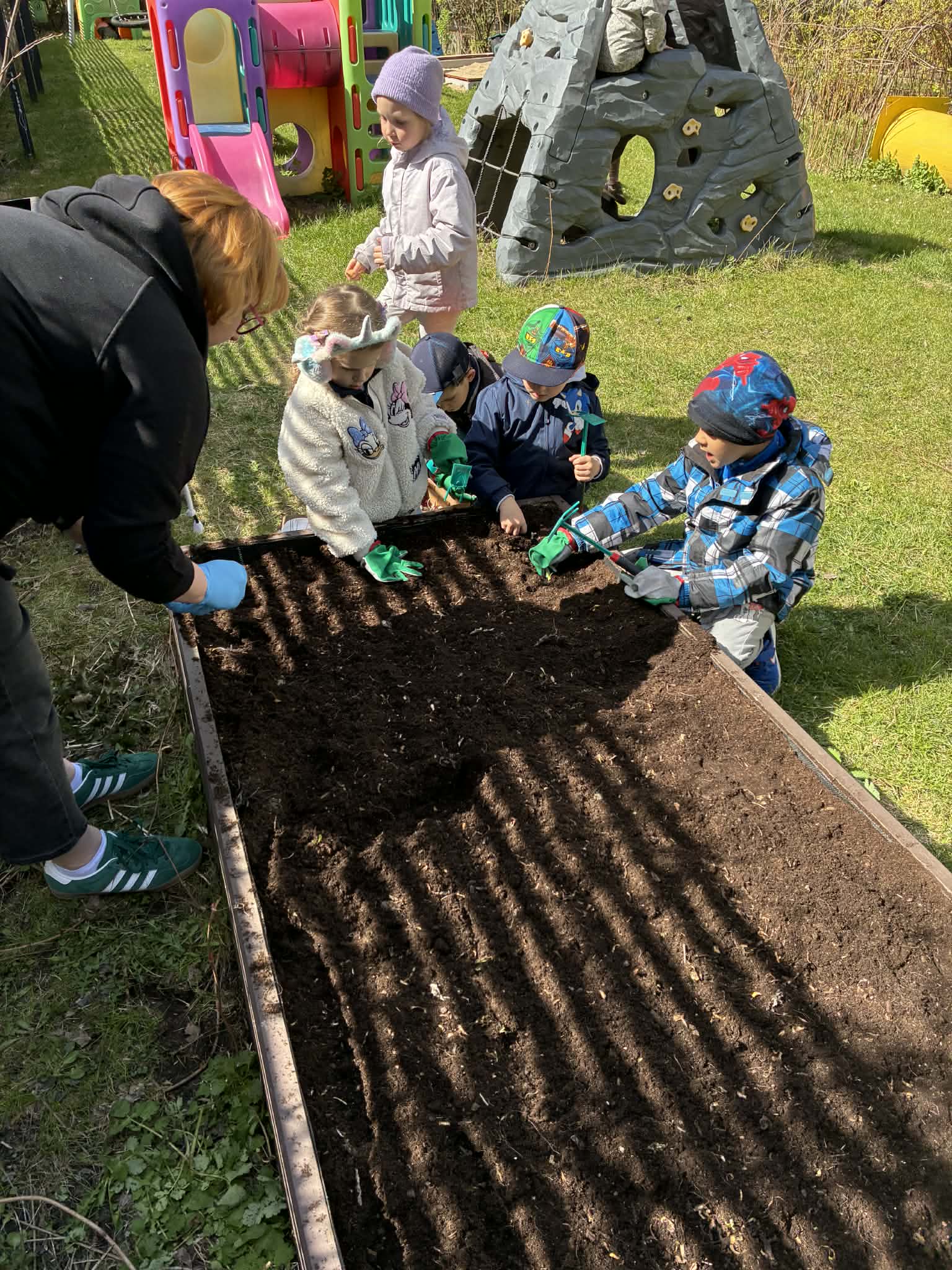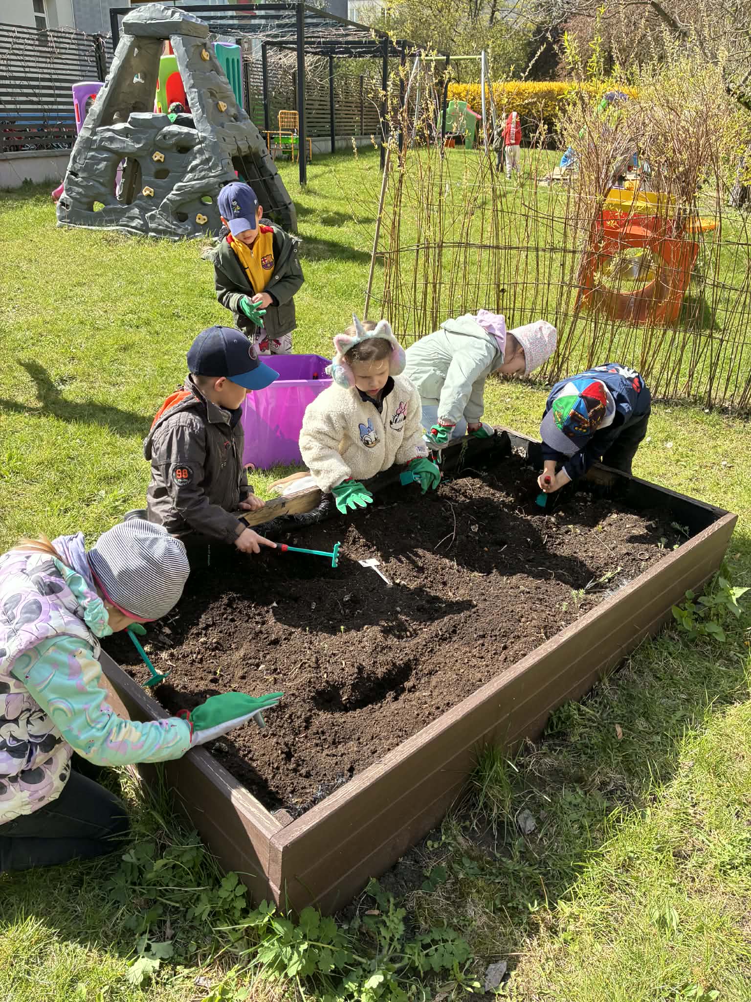 Wraz z nadejściem wiosny nasz przedszkolny ogród znów ożył – a nasi mali ogrodnicy z ogromnym zaangażowaniem zabrali się do pracy.