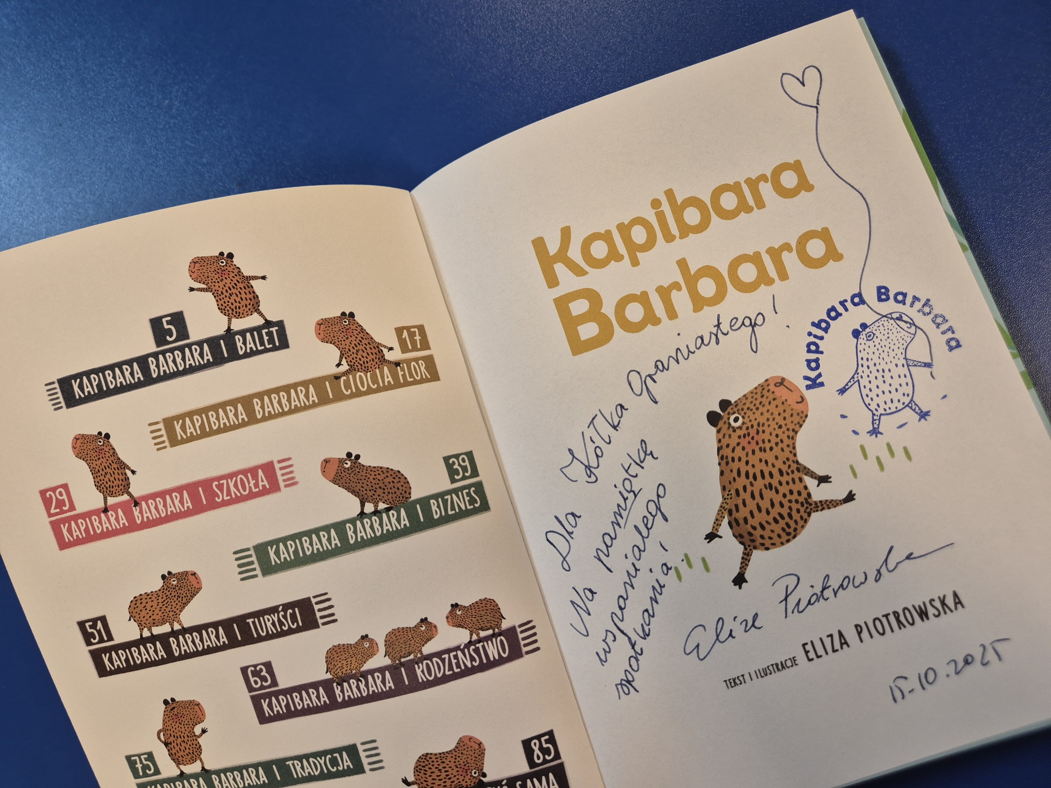 Mieliśmy dziś niesamowitą przyjemność spotkać się z Kapibarą Barbarą i jej fantastyczną autorką oraz ilustratorką – Elizą Piotrowską!
