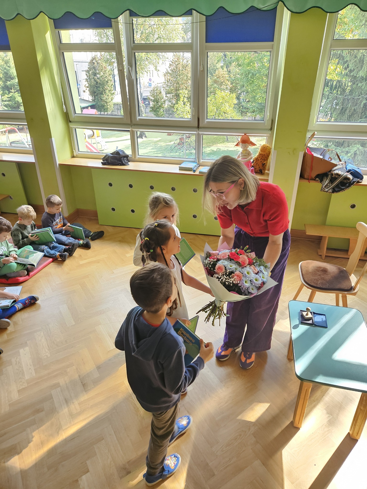 Na zakończenie każdy otrzymał książkę z osobistą dedykacją, a autorka – piękne kwiaty i garść nowych inspiracji w postaci przygotowanych przez dzieci książeczek z rysunkami.