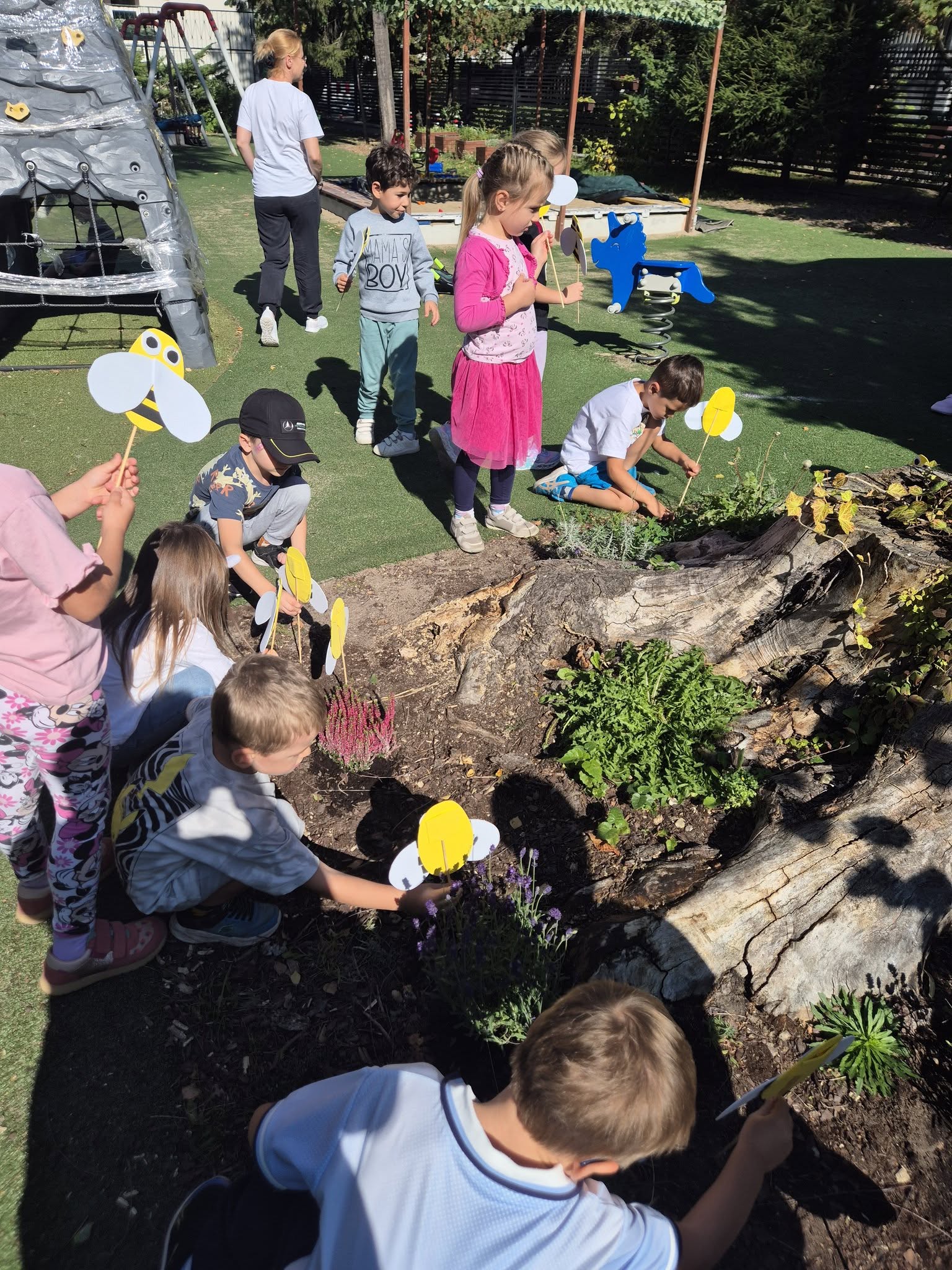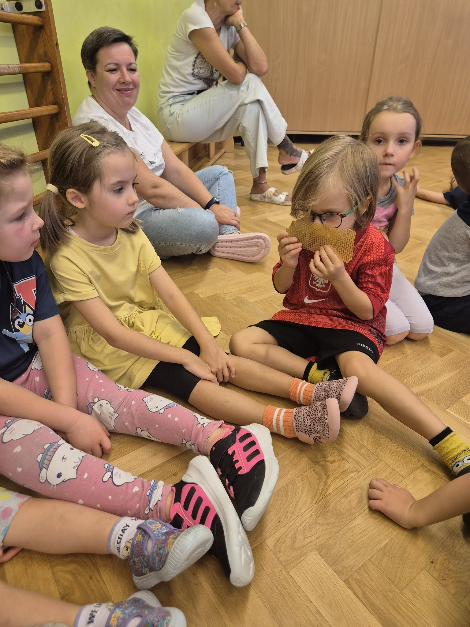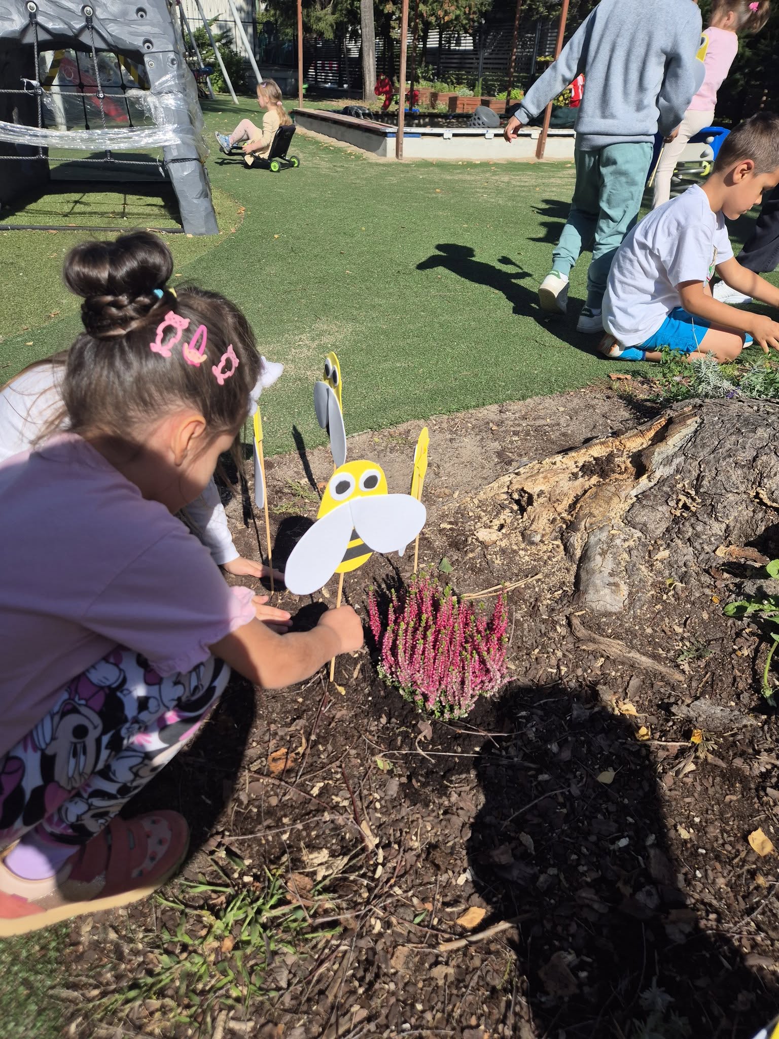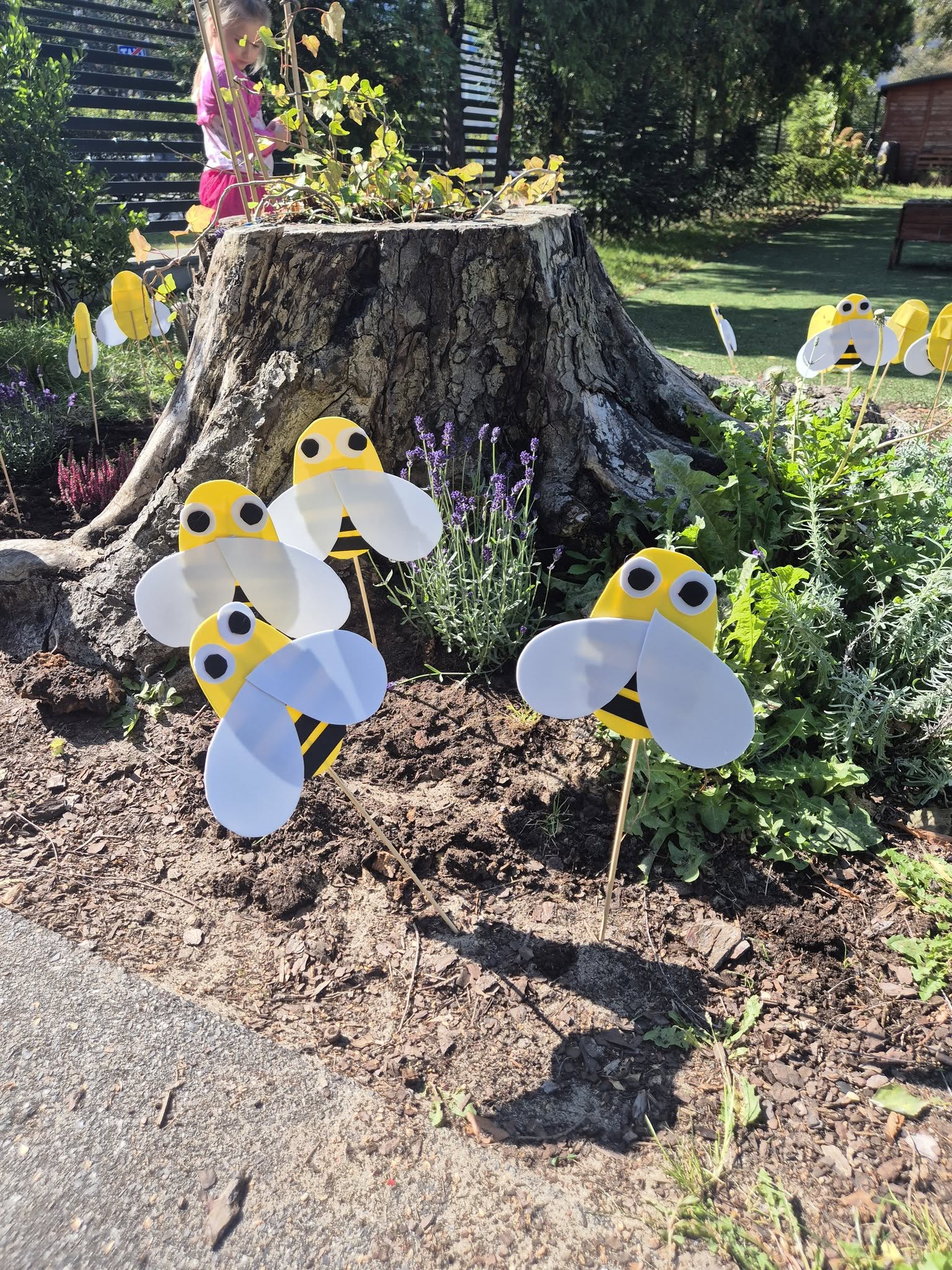Nie zabrakło także degustacji – pani Aneta przygotowała dla wszystkich pyszny miodowy poczęstunek. W ogrodzie posadziliśmy jesienne kwiaty, a grupa Fanfary wykonała pszczoły, które ozdobią nasz przedszkolny „pszczeli zakątek”.