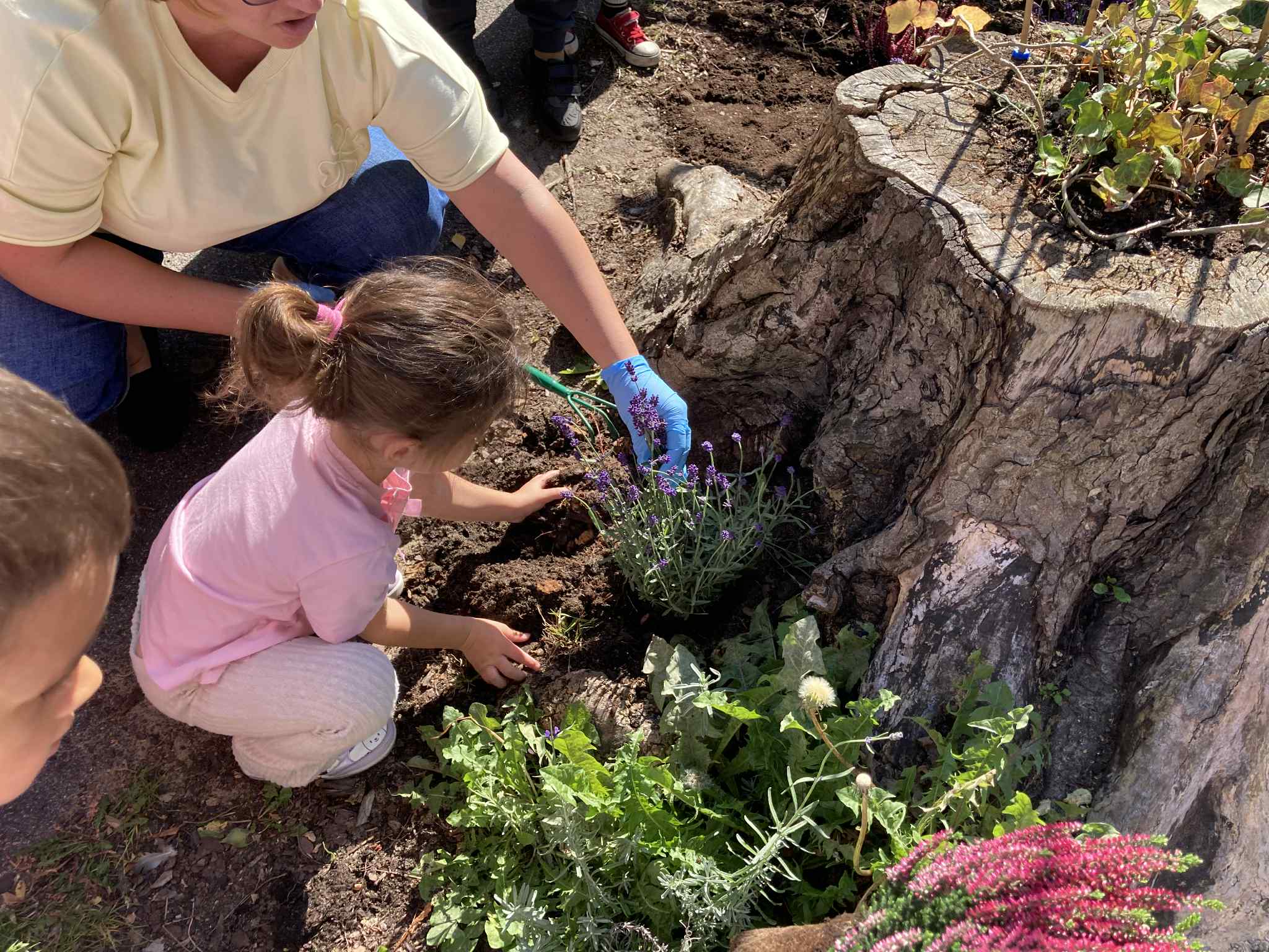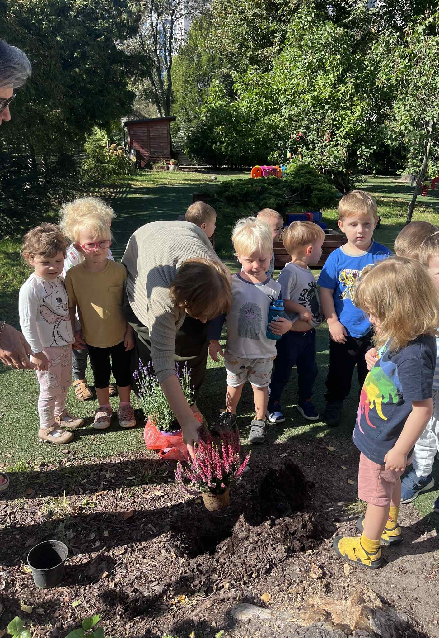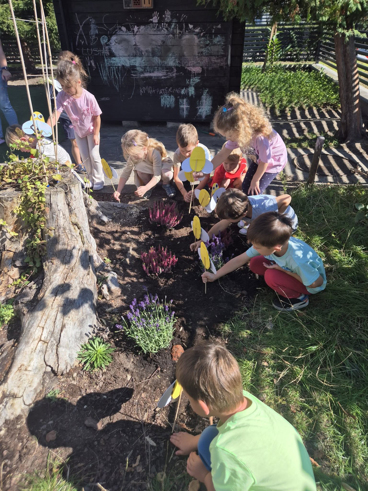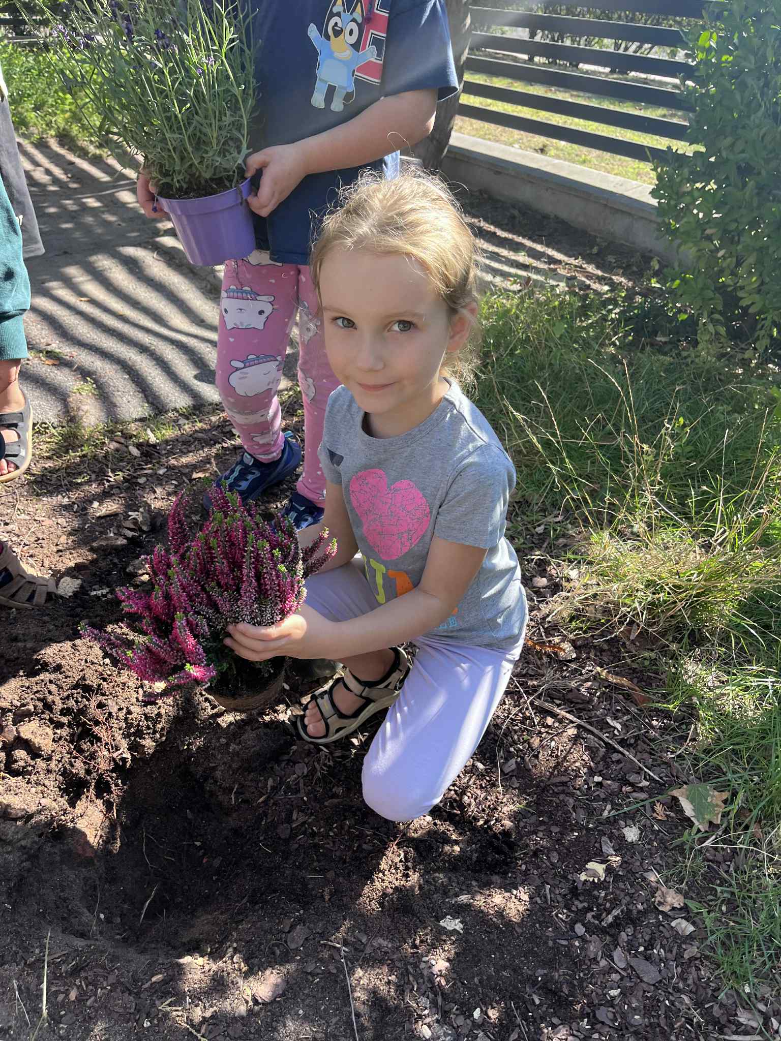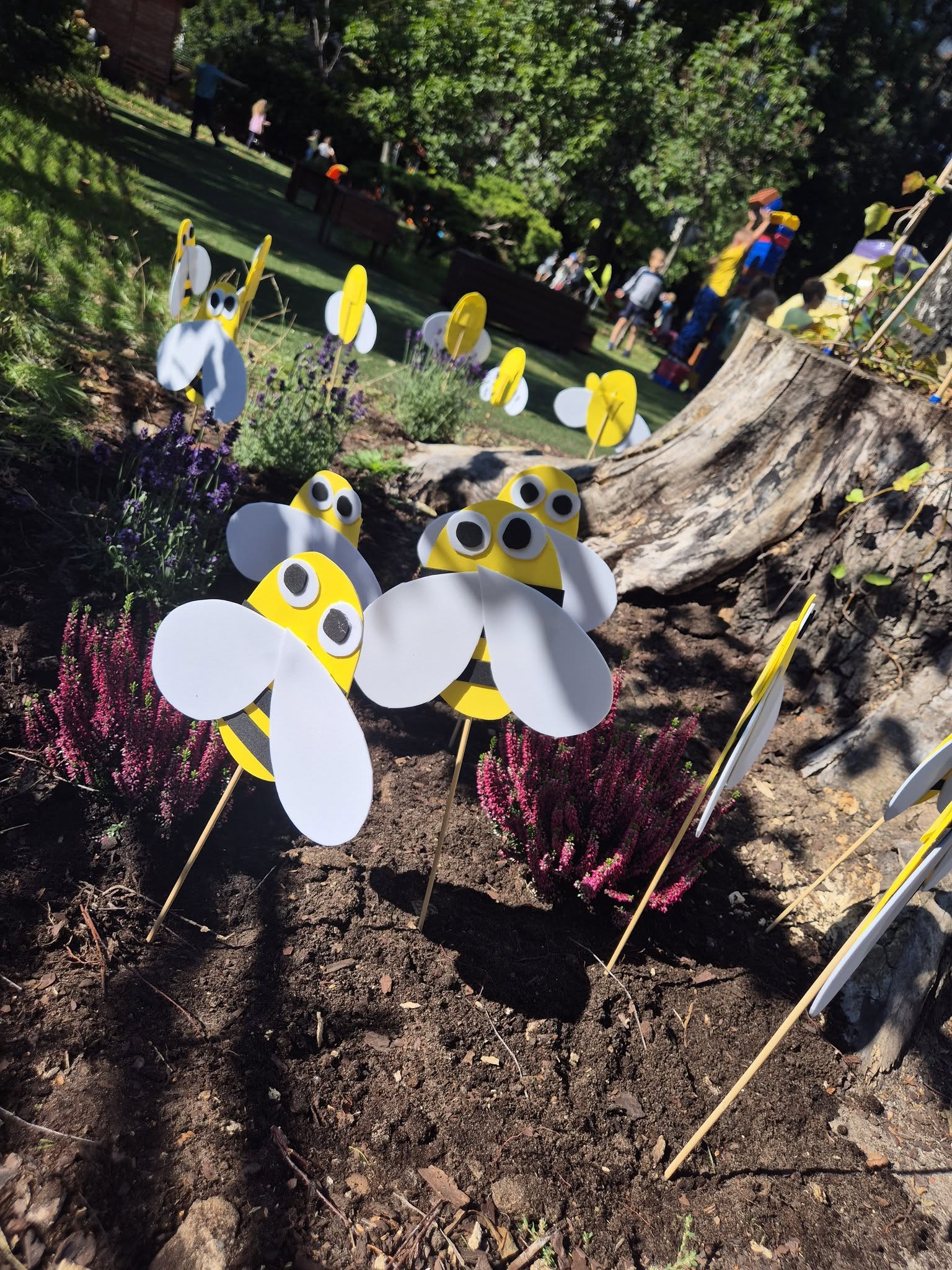 Nie zabrakło także degustacji – pani Aneta przygotowała dla wszystkich pyszny miodowy poczęstunek. W ogrodzie posadziliśmy jesienne kwiaty, a grupa Fanfary wykonała pszczoły, które ozdobią nasz przedszkolny „pszczeli zakątek”.