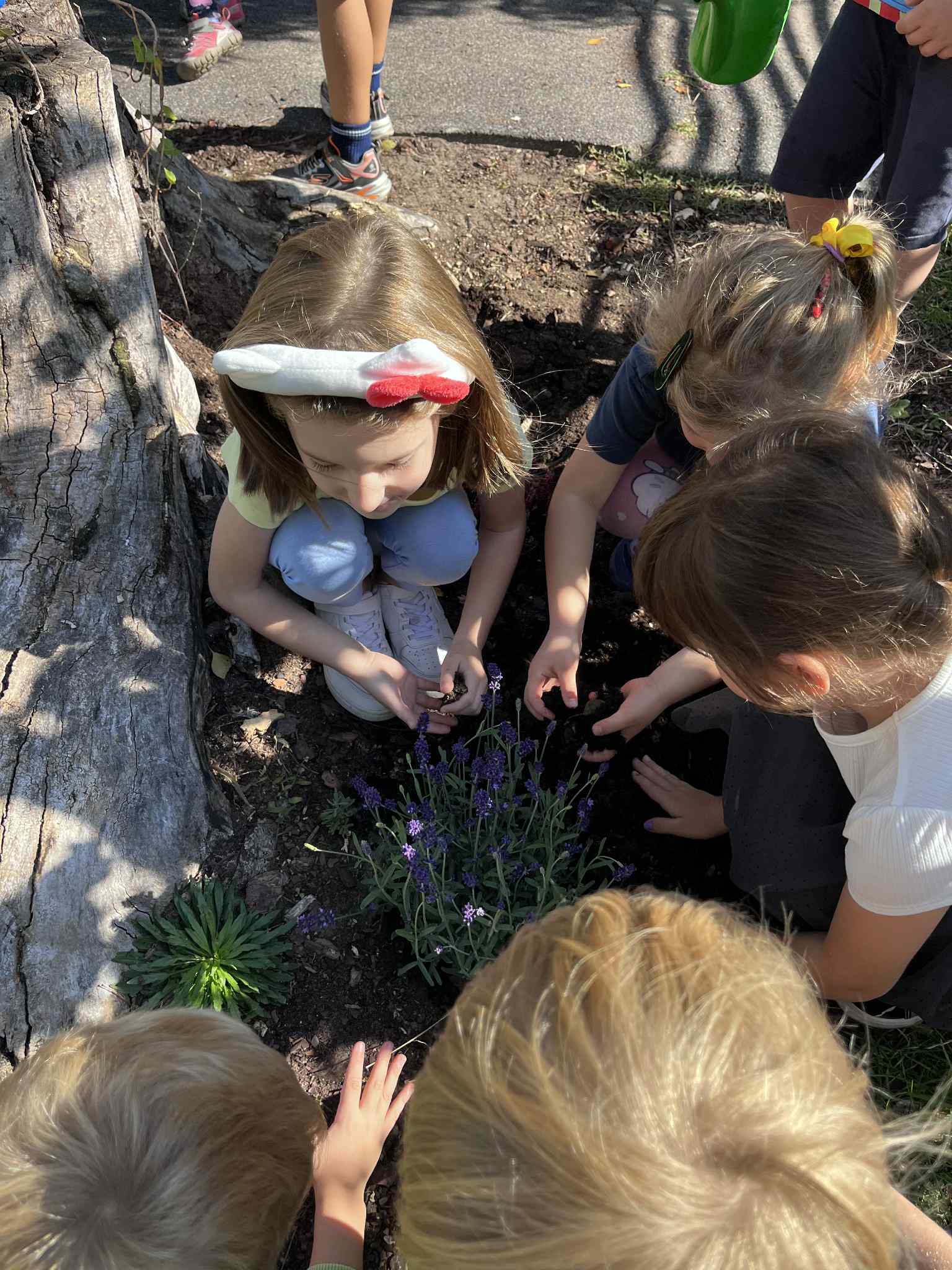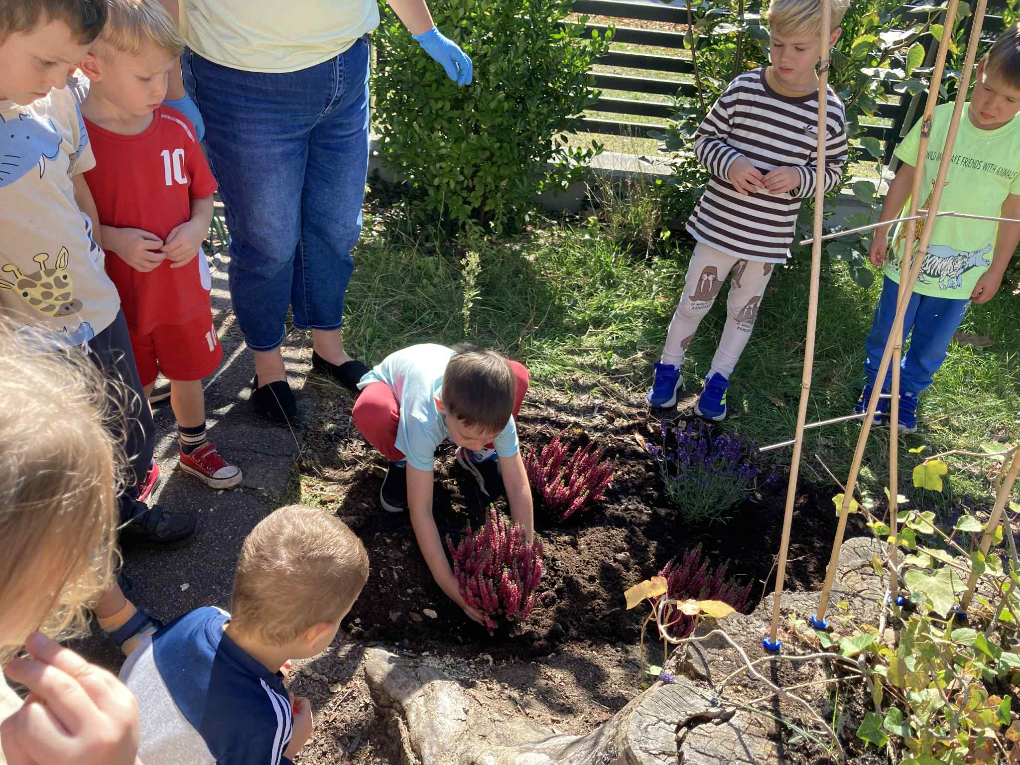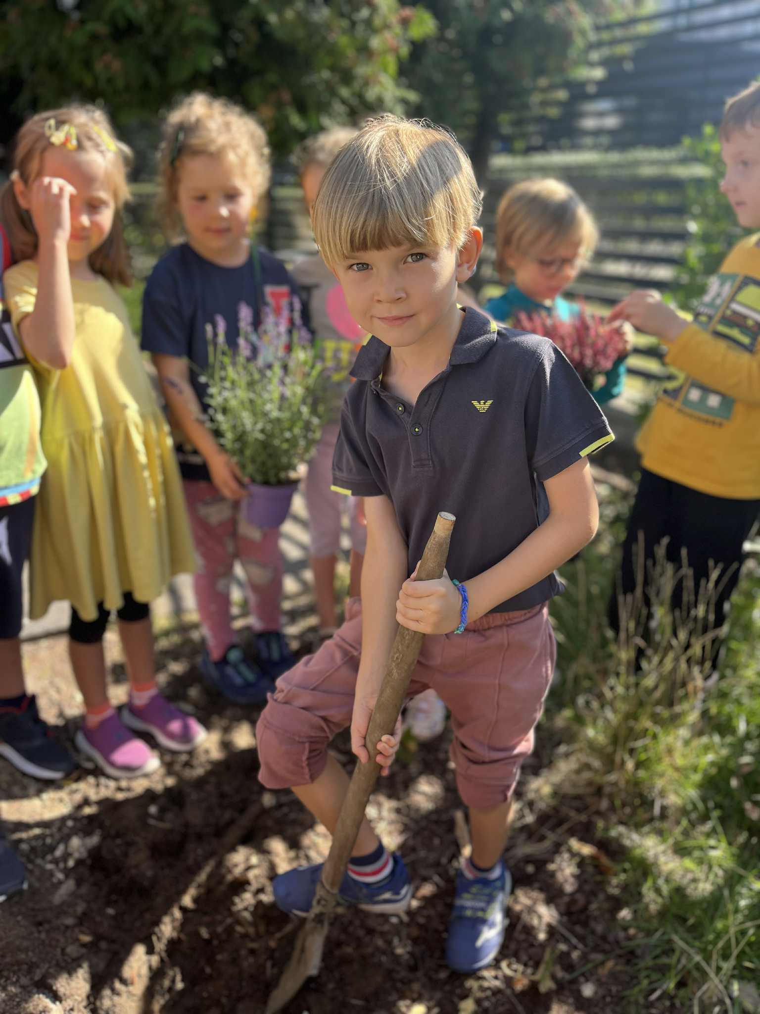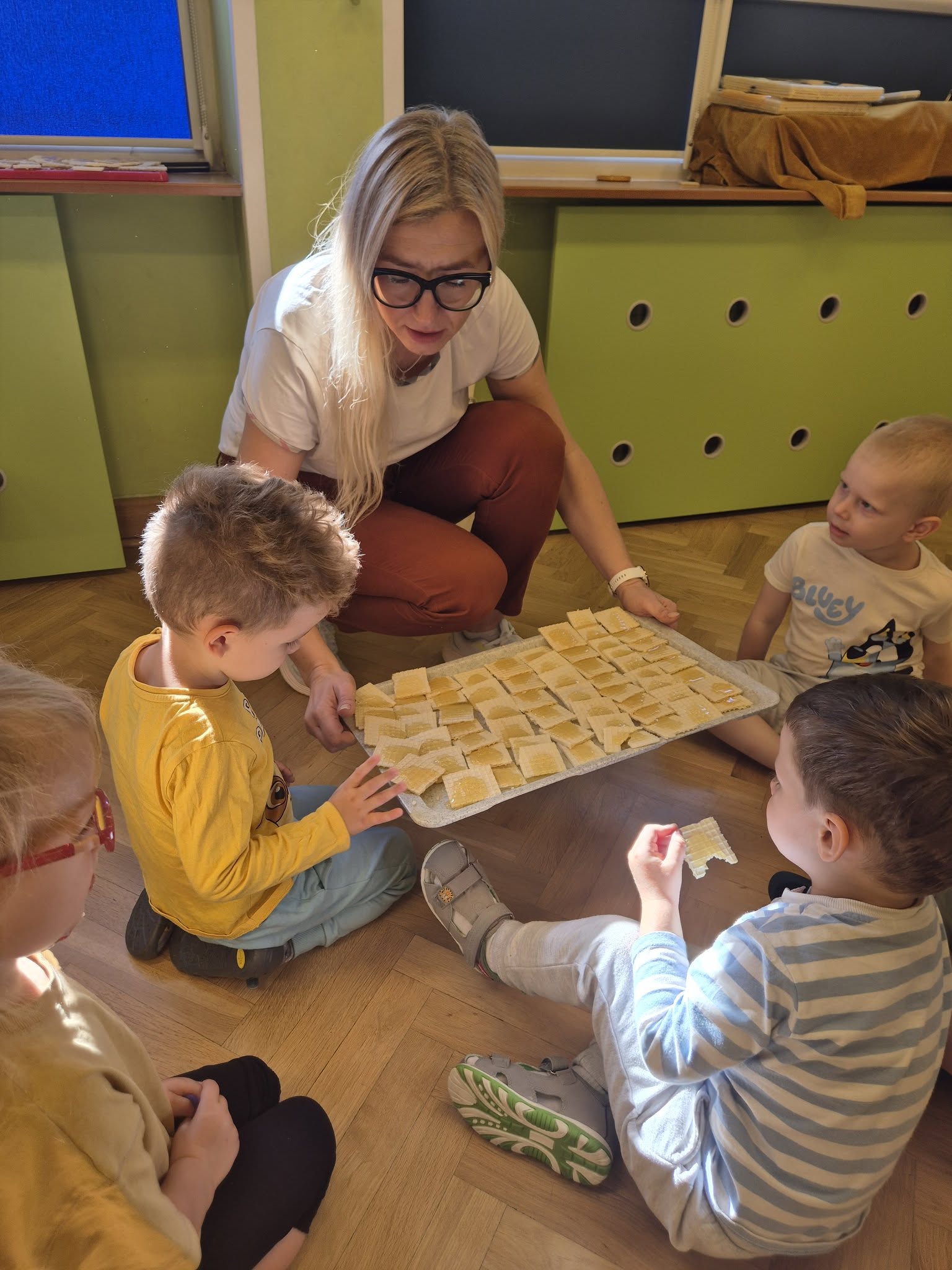 Nie zabrakło także degustacji – pani Aneta przygotowała dla wszystkich pyszny miodowy poczęstunek. W ogrodzie posadziliśmy jesienne kwiaty, a grupa Fanfary wykonała pszczoły, które ozdobią nasz przedszkolny „pszczeli zakątek”.