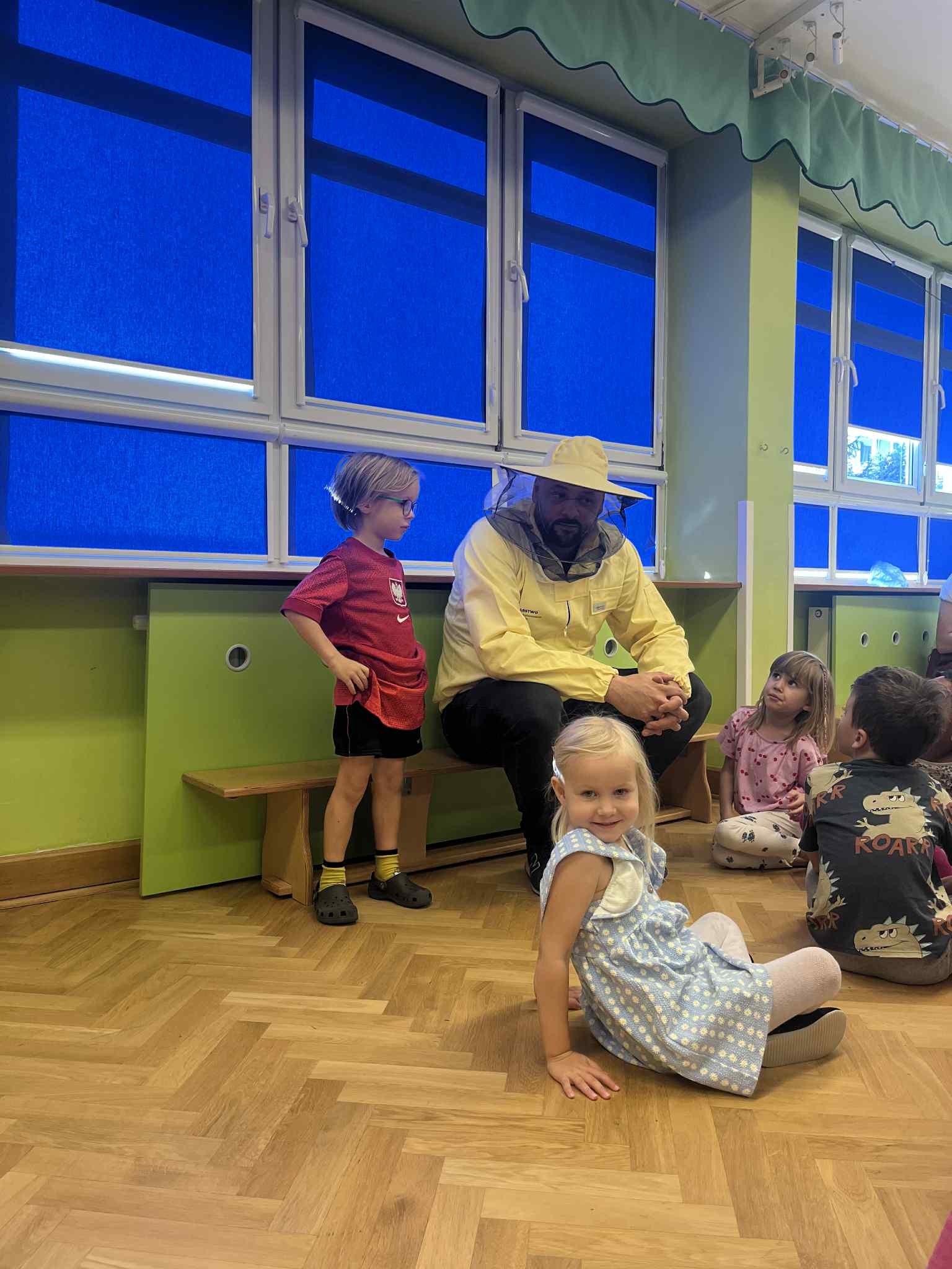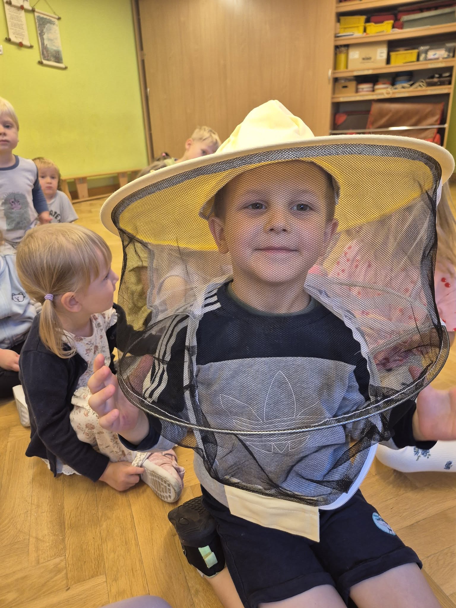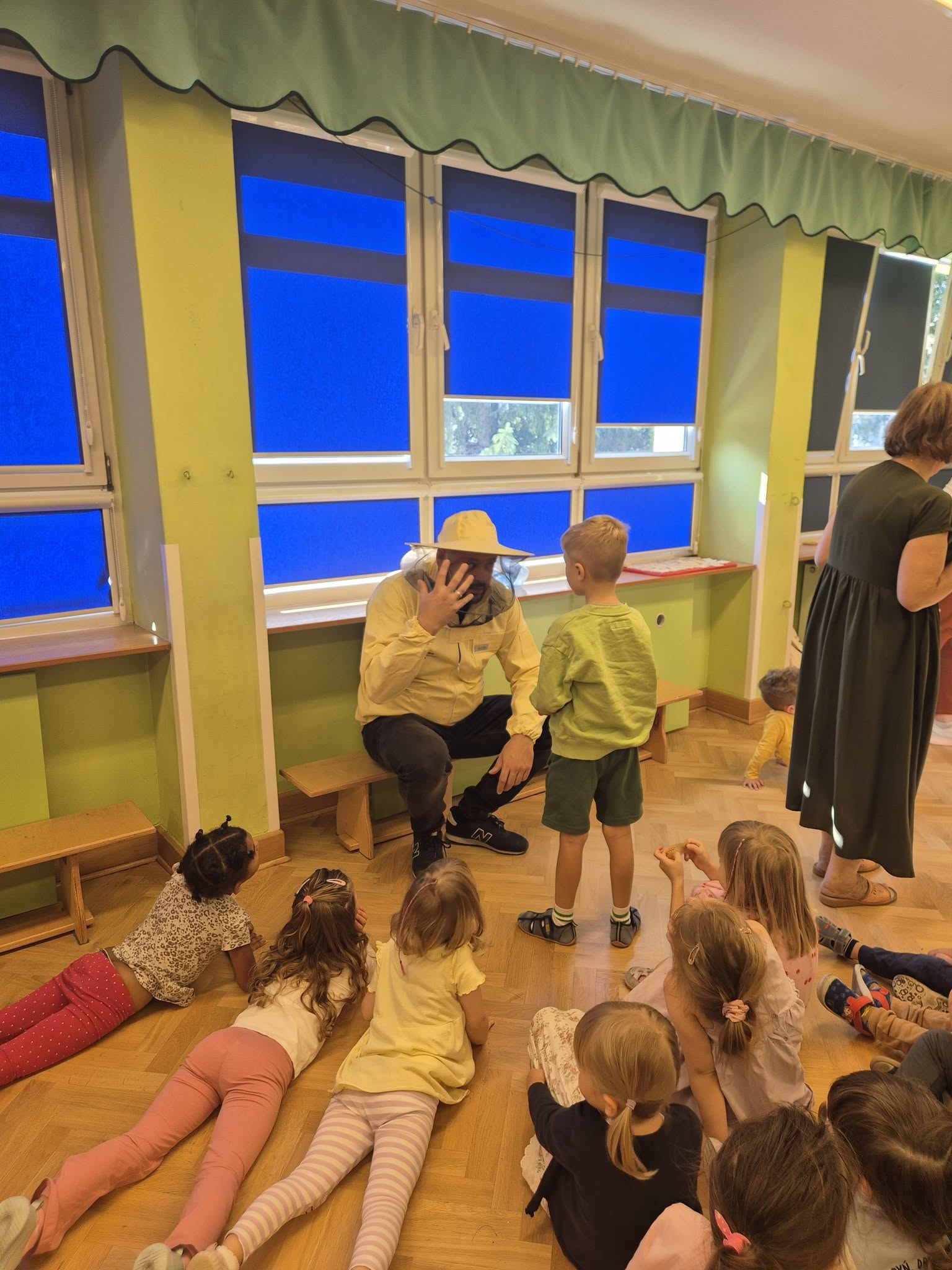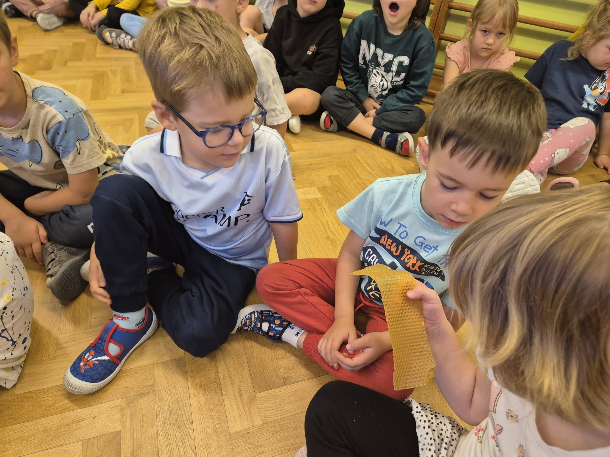 Pierwszy dzień Tygodnia Przedszkolaka rozpoczęliśmy wyjątkowym spotkaniem z pszczelarzem – panem Michałem. Opowiedział nam o życiu pszczół, ich zwyczajach oraz ogromnym znaczeniu dla przyrody i człowieka. Dzieci mogły zobaczyć strój ochronny potrzebny do pracy w pasiece oraz dotknąć prawdziwego wosku pszczelego.