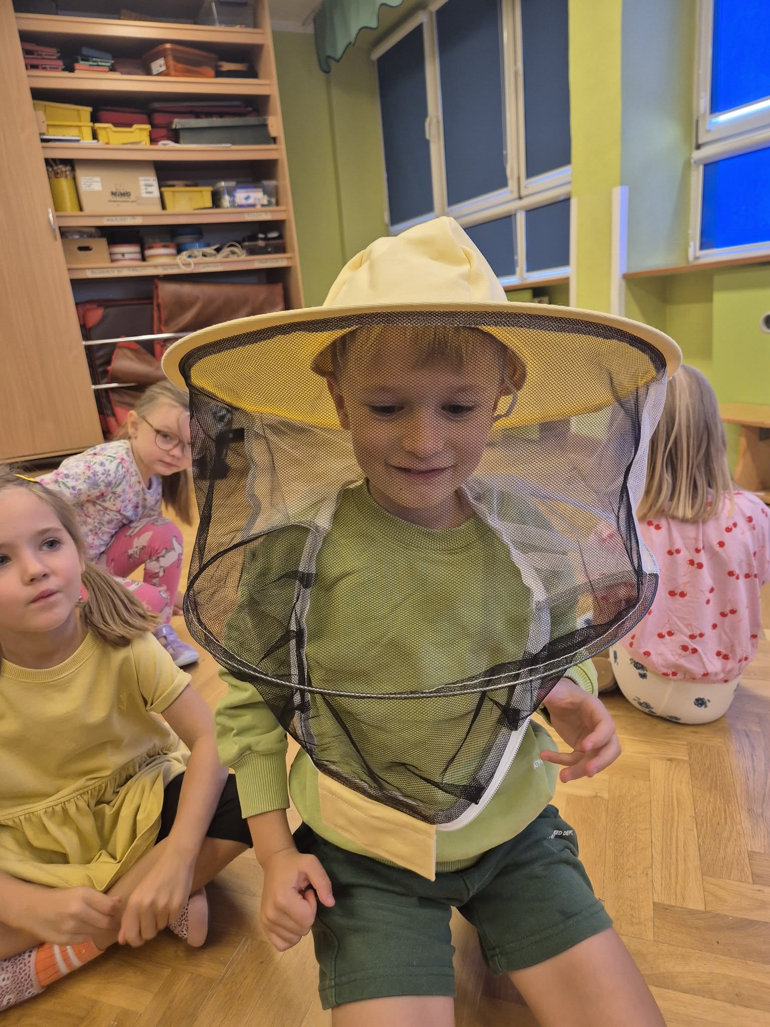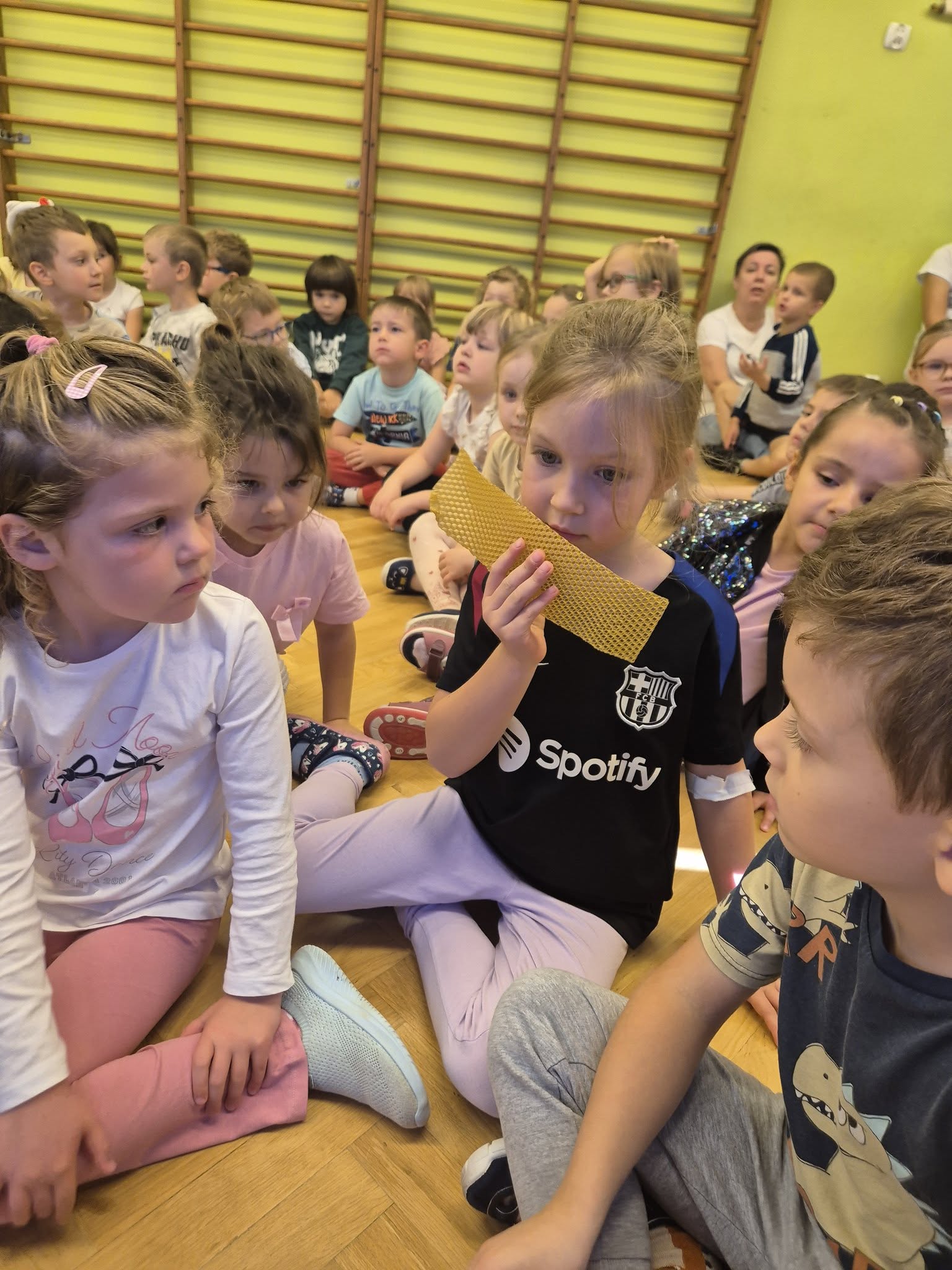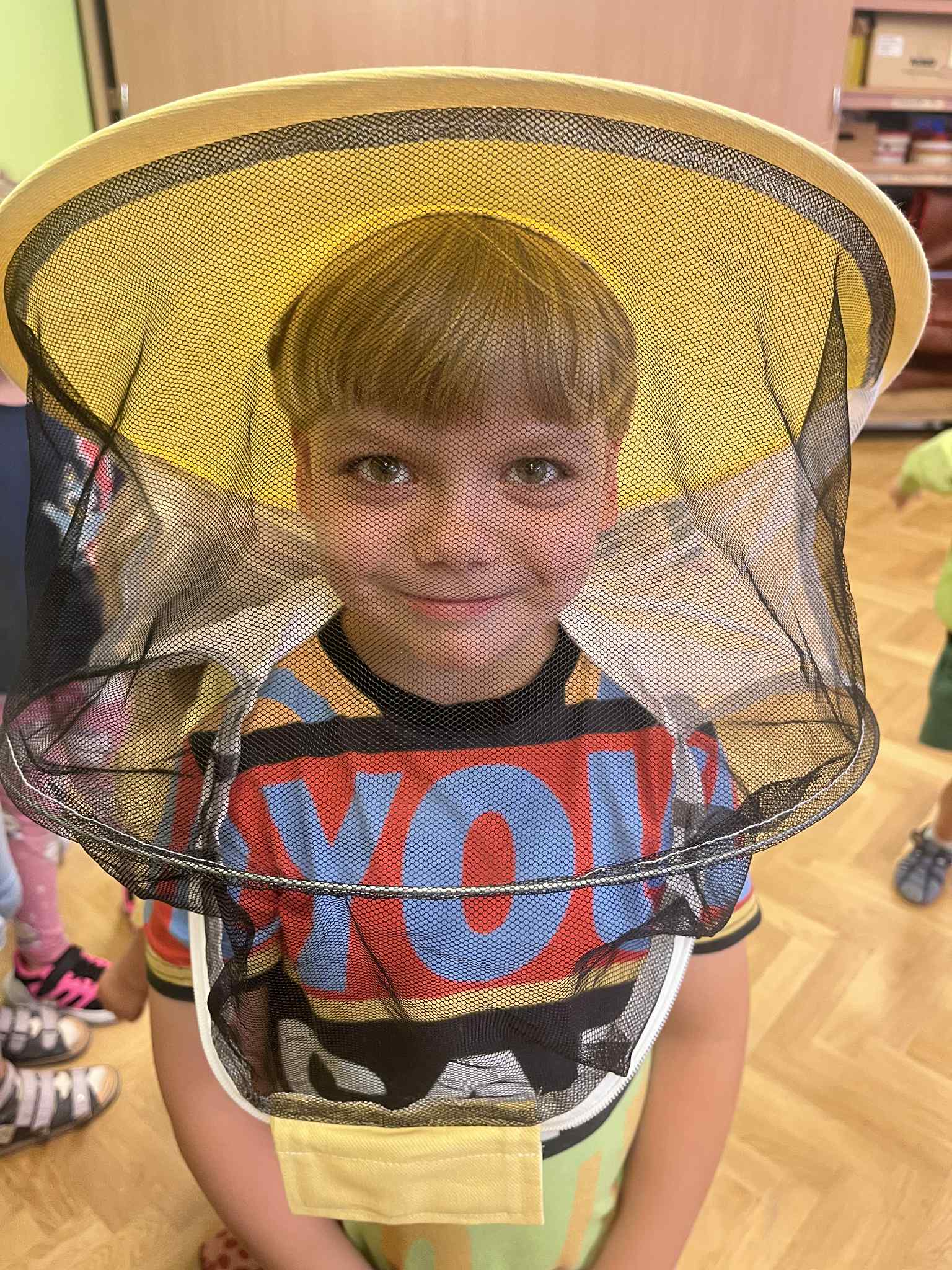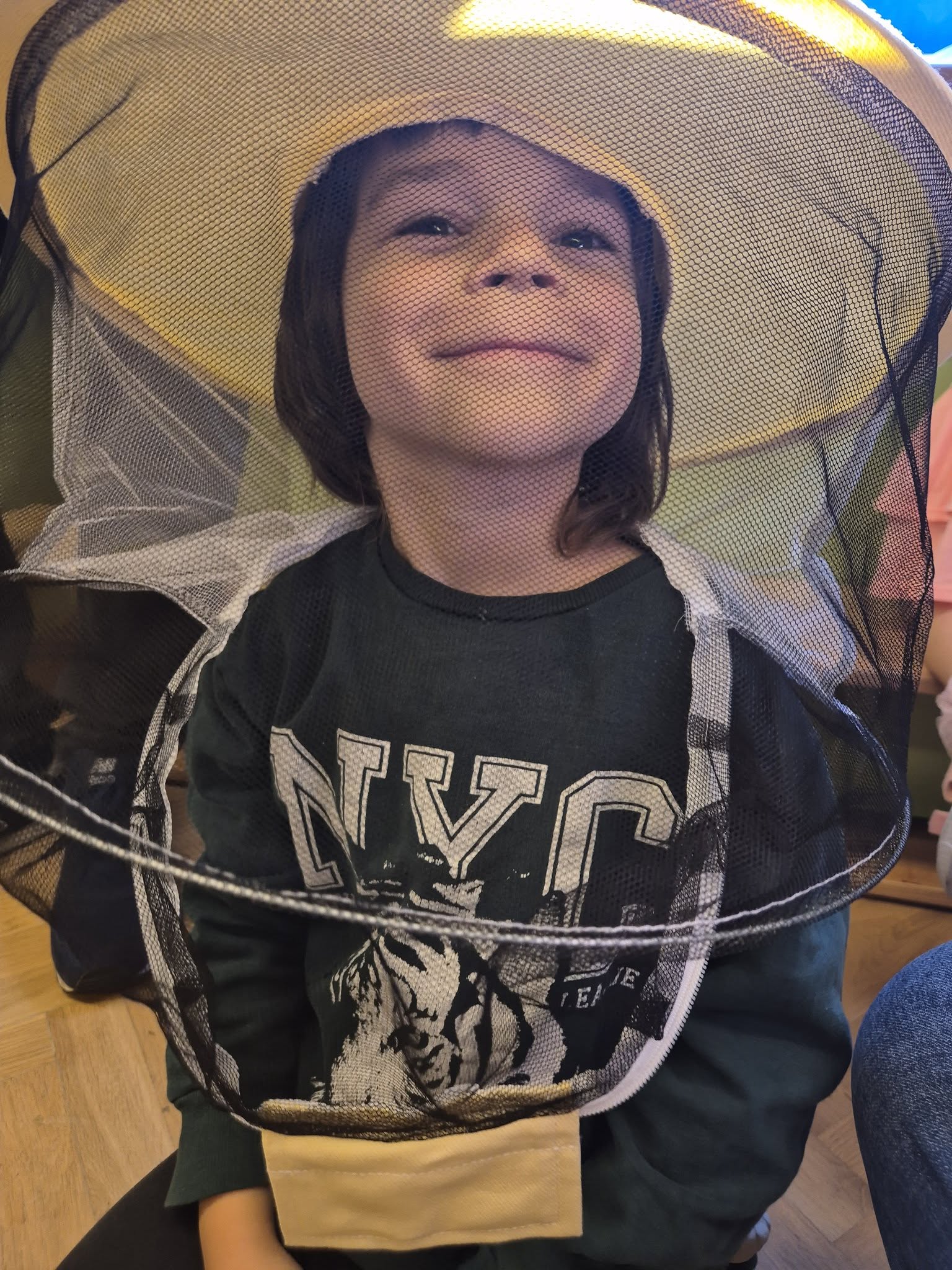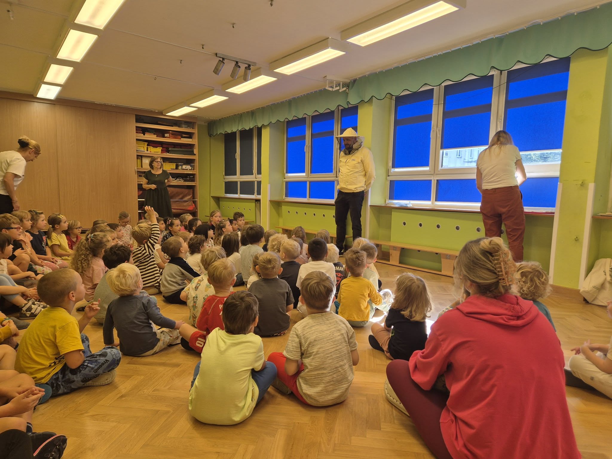 Pierwszy dzień Tygodnia Przedszkolaka rozpoczęliśmy wyjątkowym spotkaniem z pszczelarzem – panem Michałem. Opowiedział nam o życiu pszczół, ich zwyczajach oraz ogromnym znaczeniu dla przyrody i człowieka. Dzieci mogły zobaczyć strój ochronny potrzebny do pracy w pasiece oraz dotknąć prawdziwego wosku pszczelego.