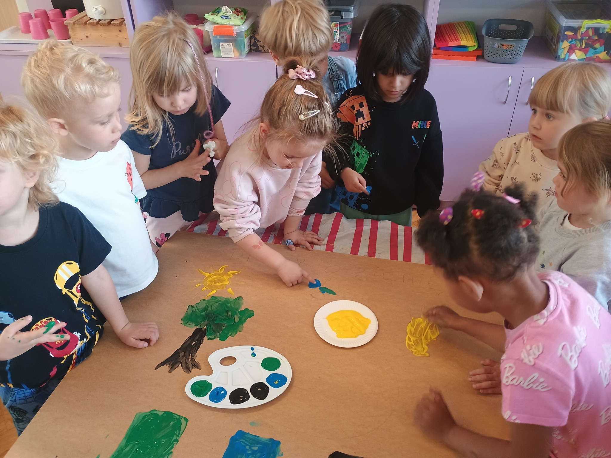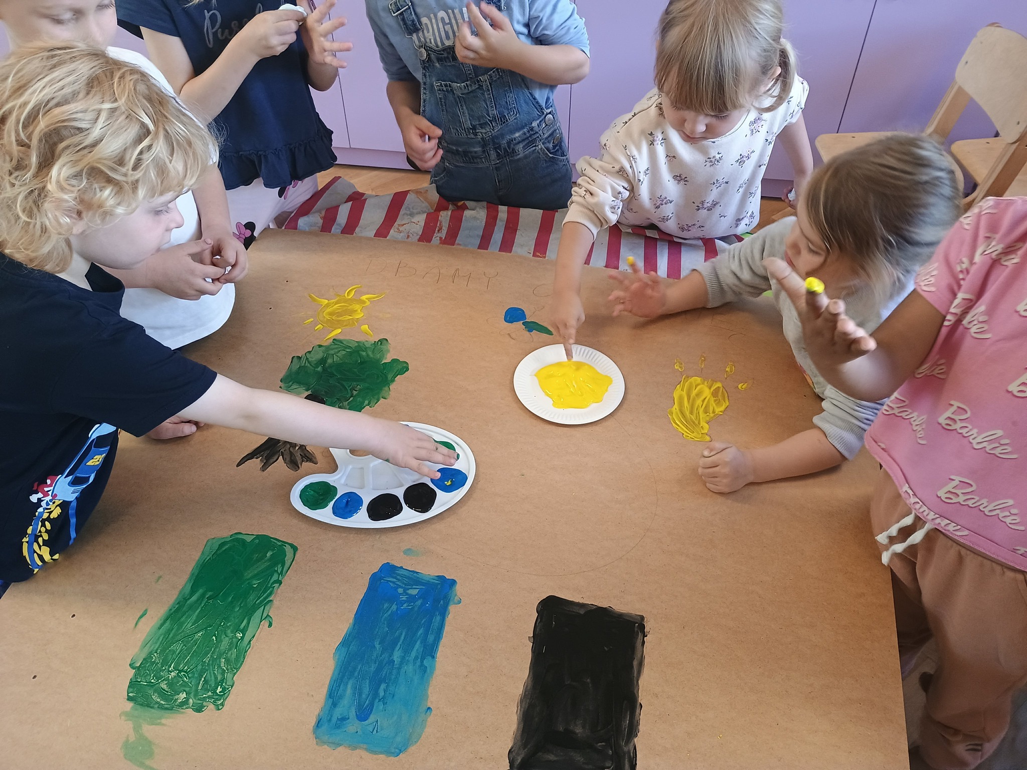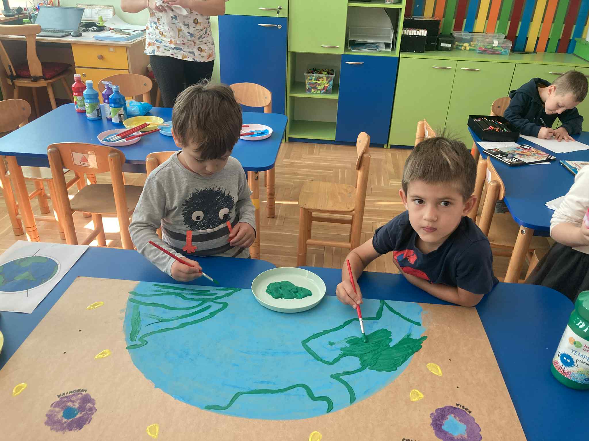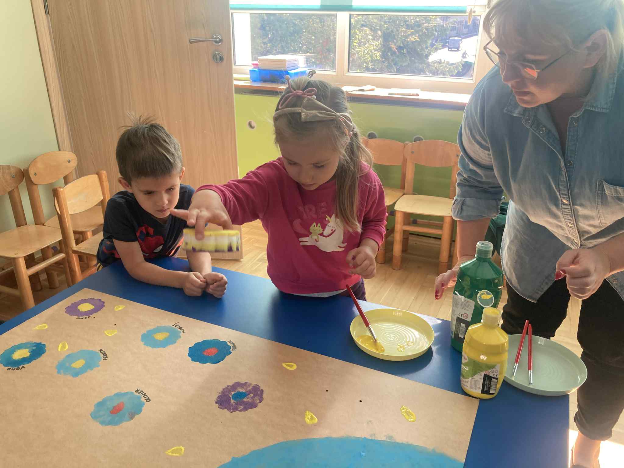 Ostatni dzień naszych przyrodniczych zajęć poświęciliśmy twórczości artystycznej. Dzieci zastanawiały się, co chciałyby przekazać Matce Ziemi i w jaki sposób mogą o nią dbać.