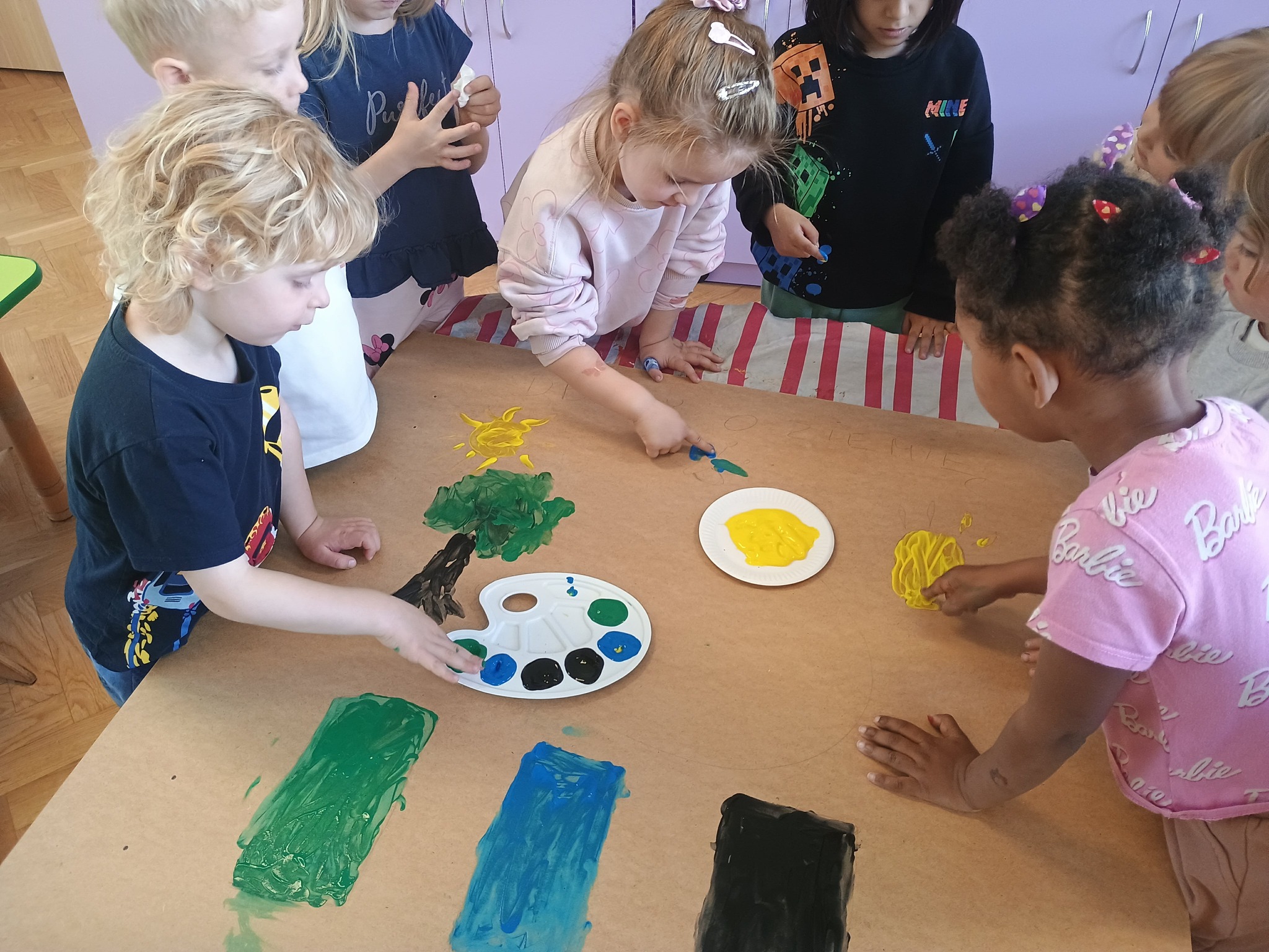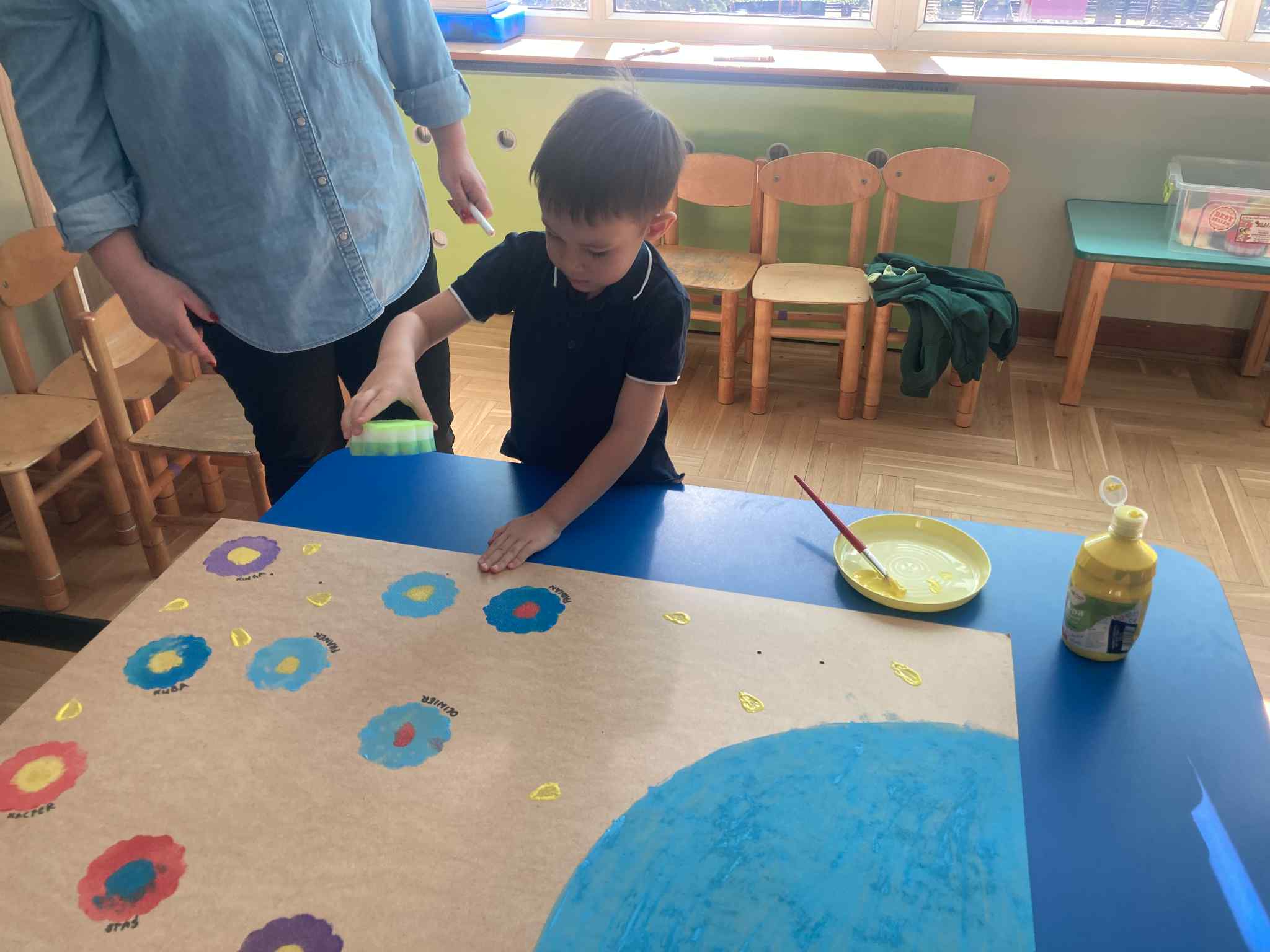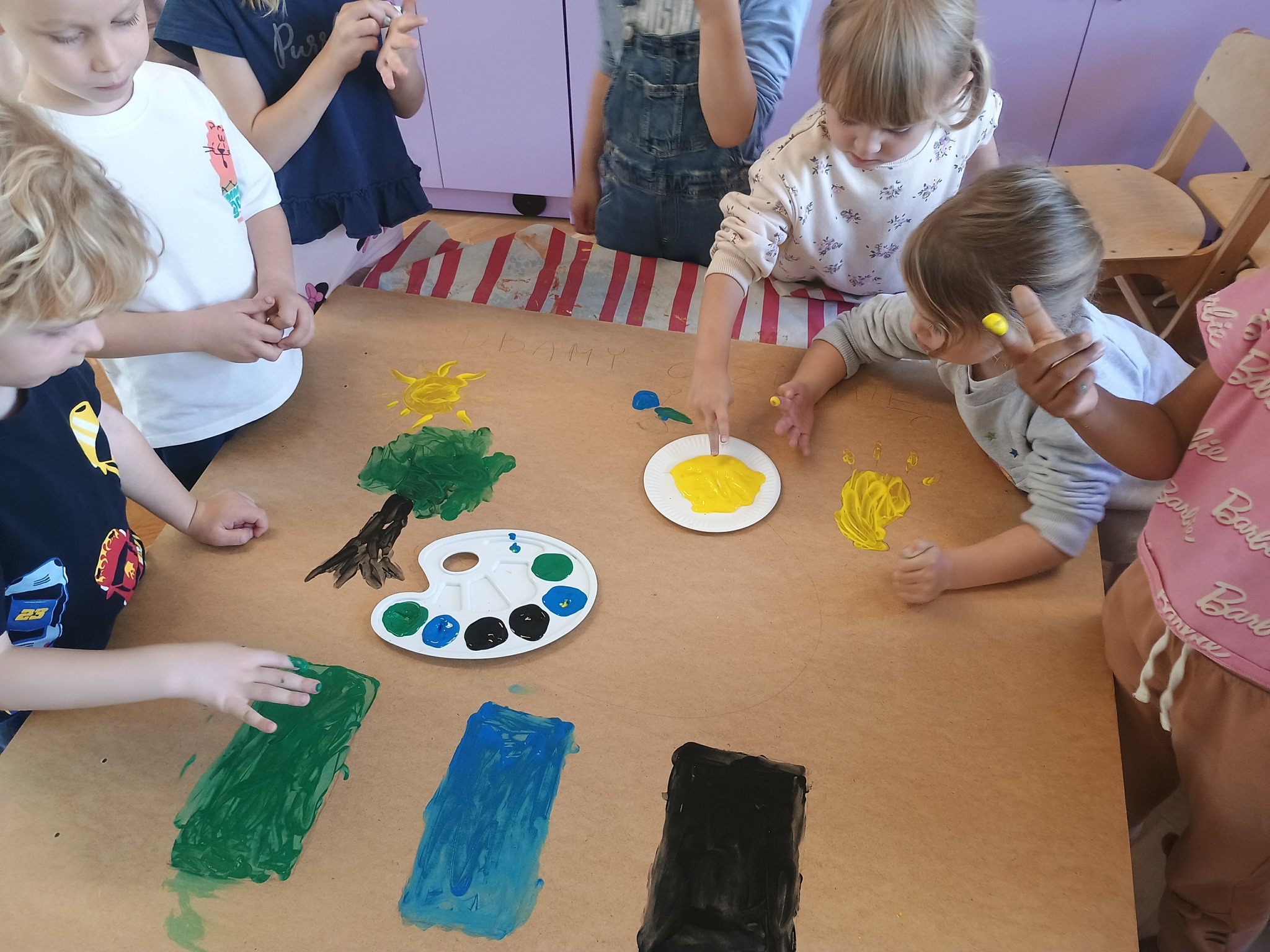 Ostatni dzień naszych przyrodniczych zajęć poświęciliśmy twórczości artystycznej. Dzieci zastanawiały się, co chciałyby przekazać Matce Ziemi i w jaki sposób mogą o nią dbać.