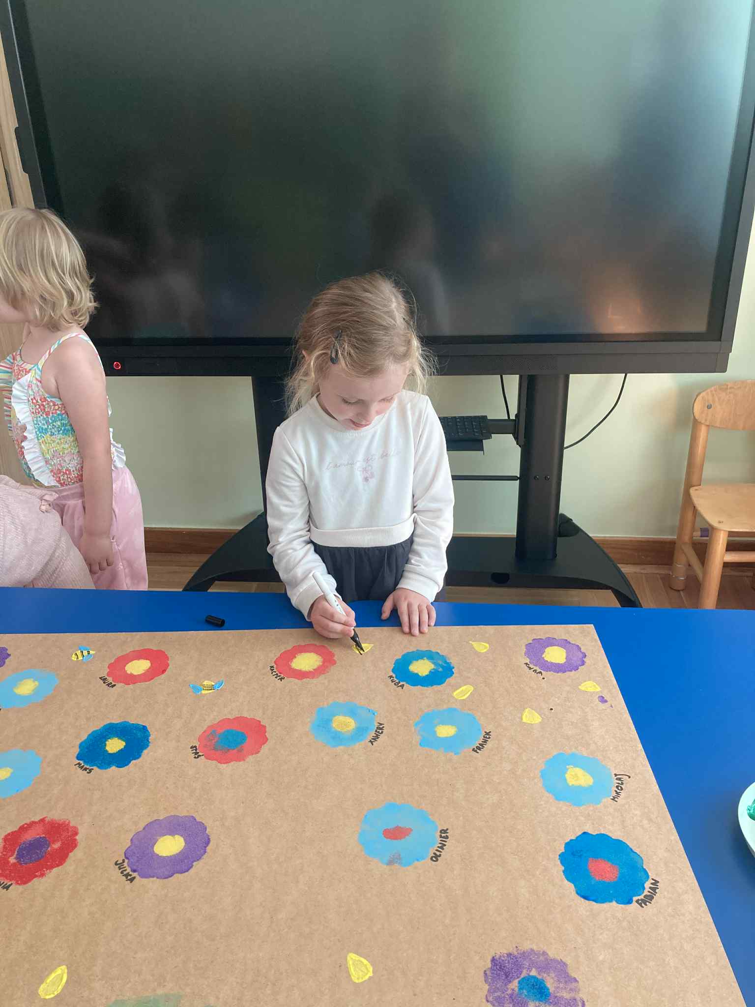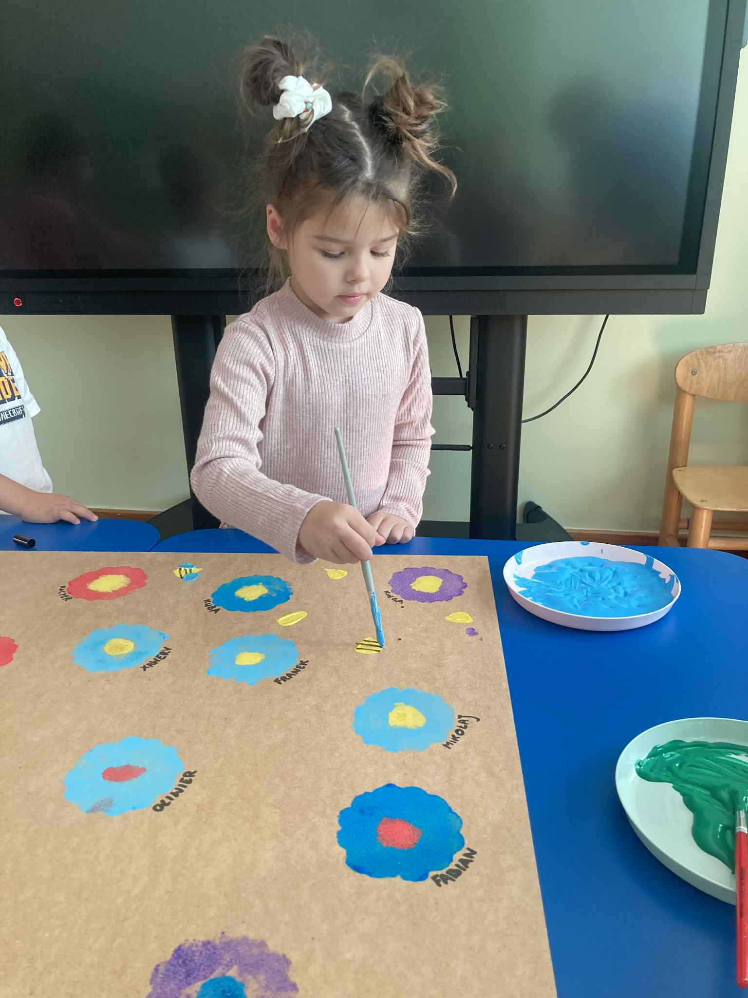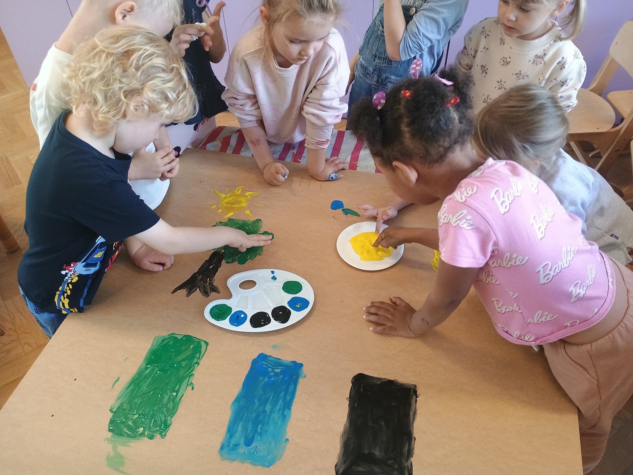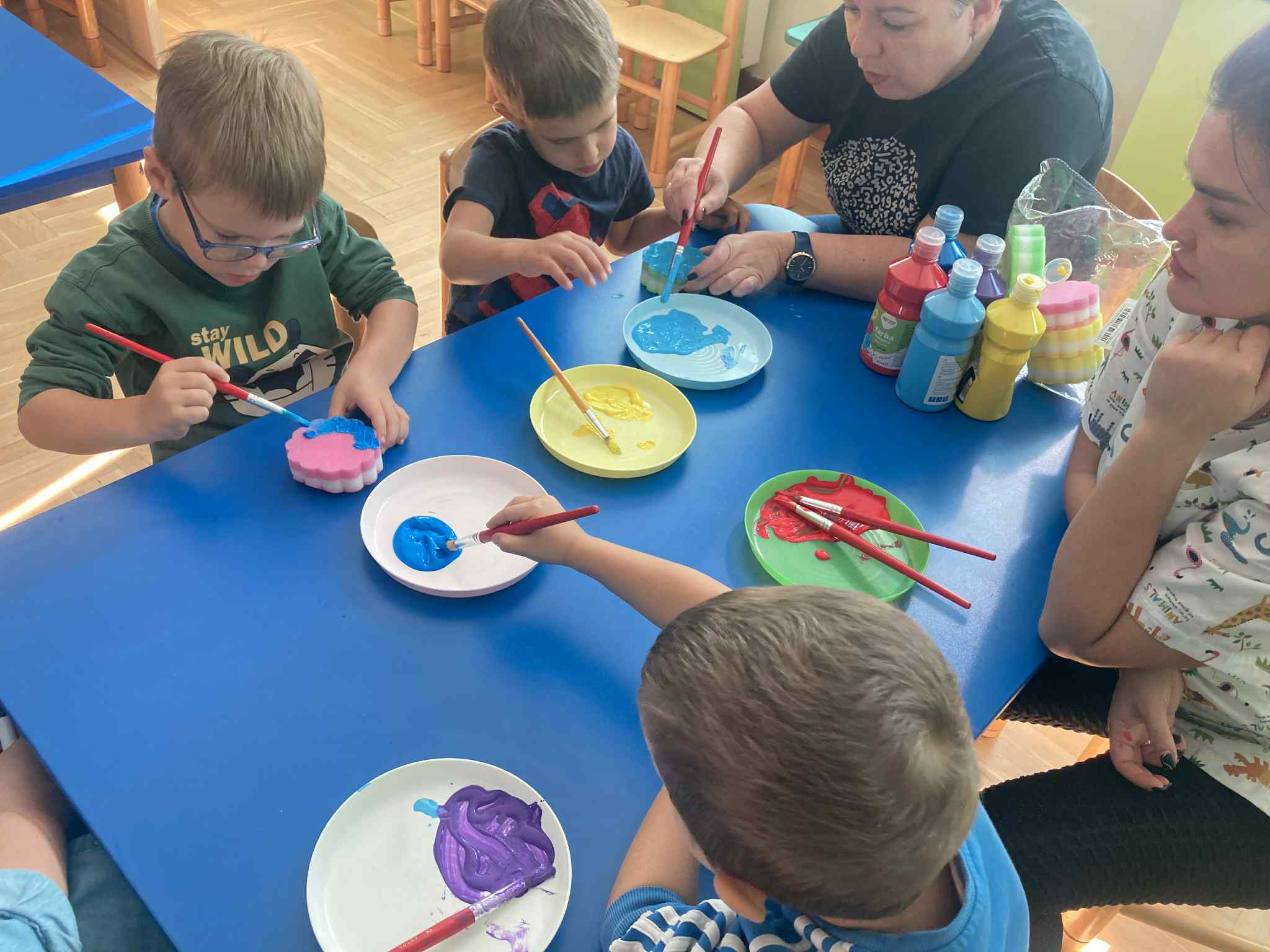 Ostatni dzień naszych przyrodniczych zajęć poświęciliśmy twórczości artystycznej. Dzieci zastanawiały się, co chciałyby przekazać Matce Ziemi i w jaki sposób mogą o nią dbać.