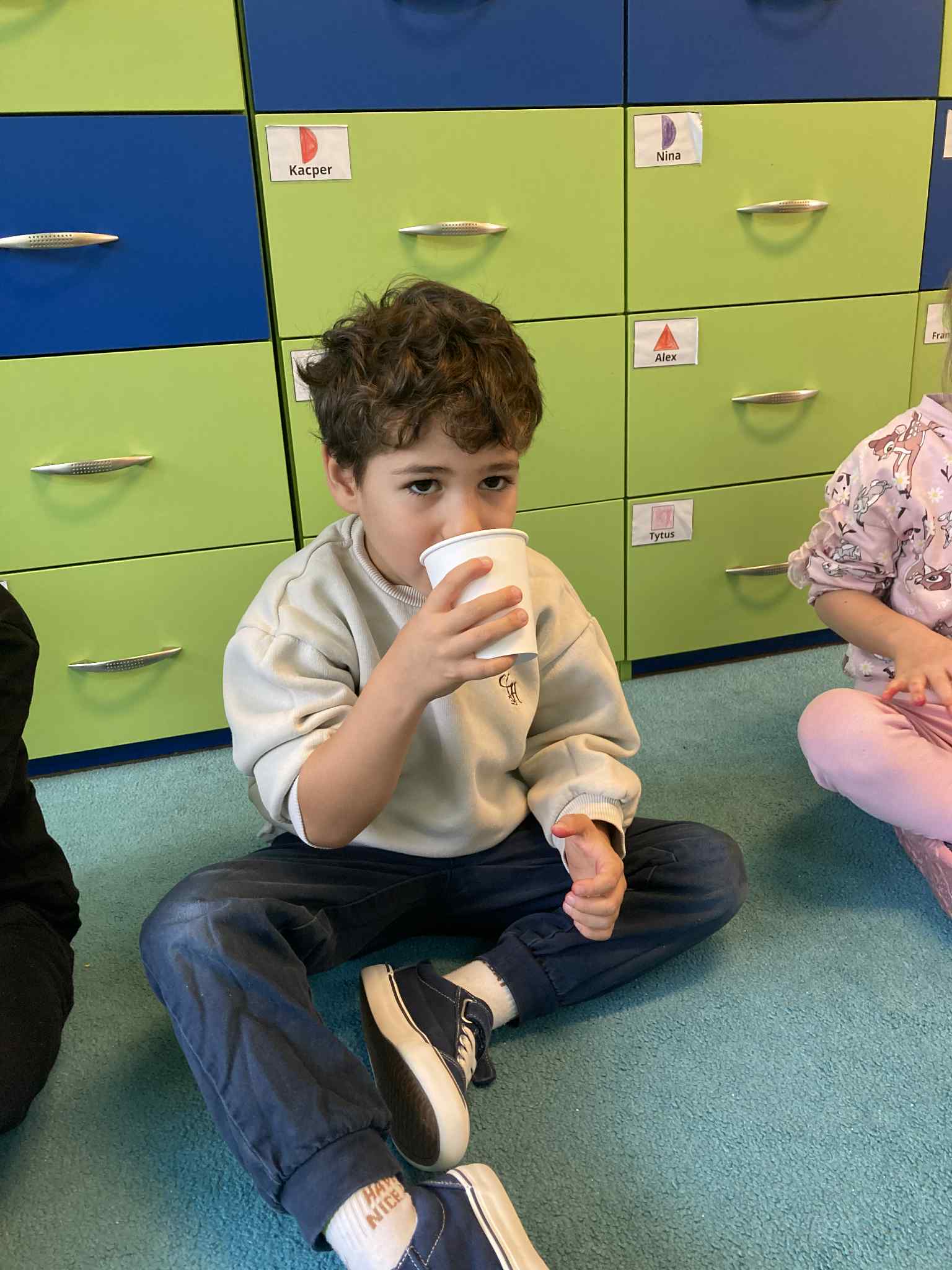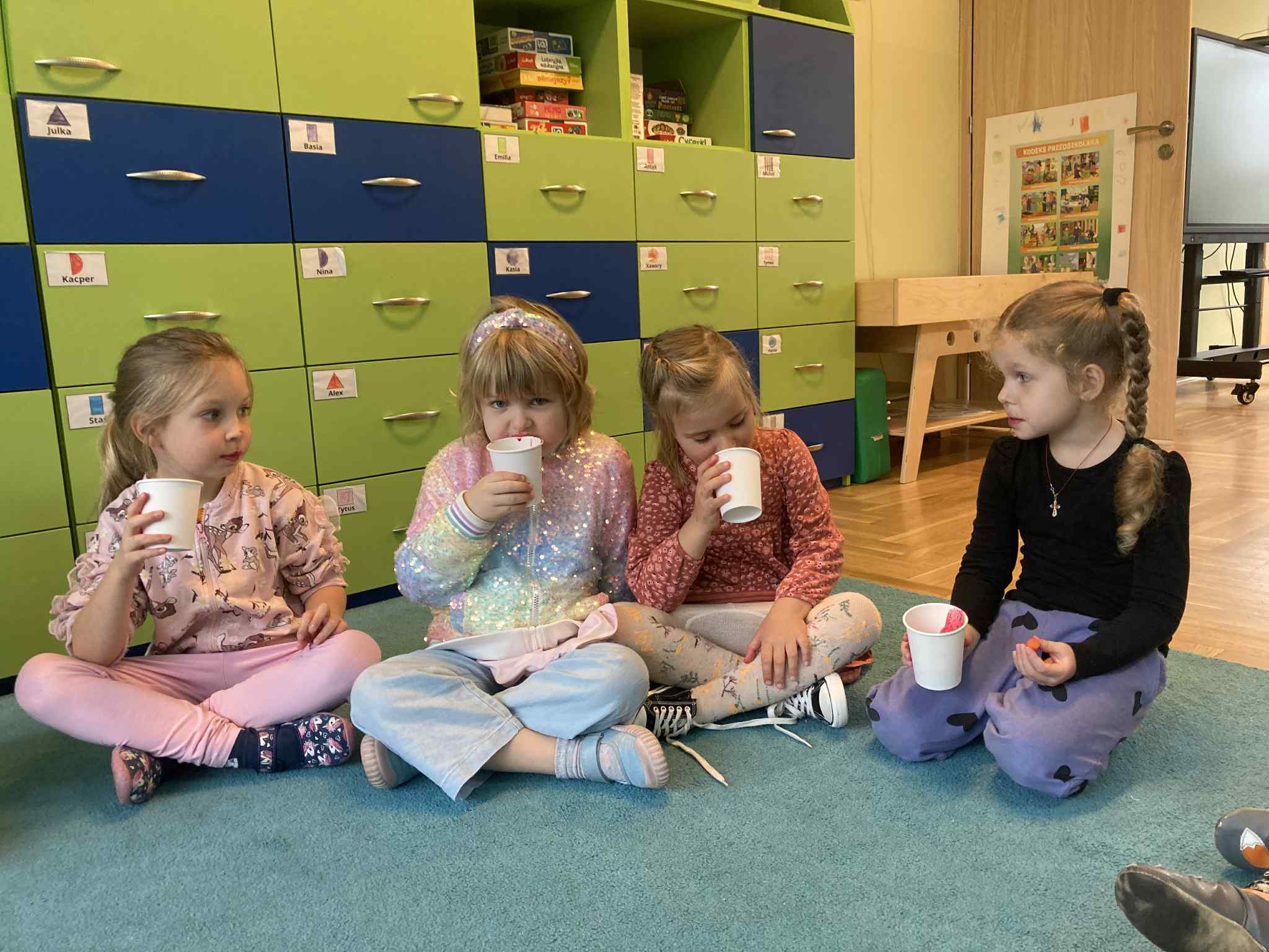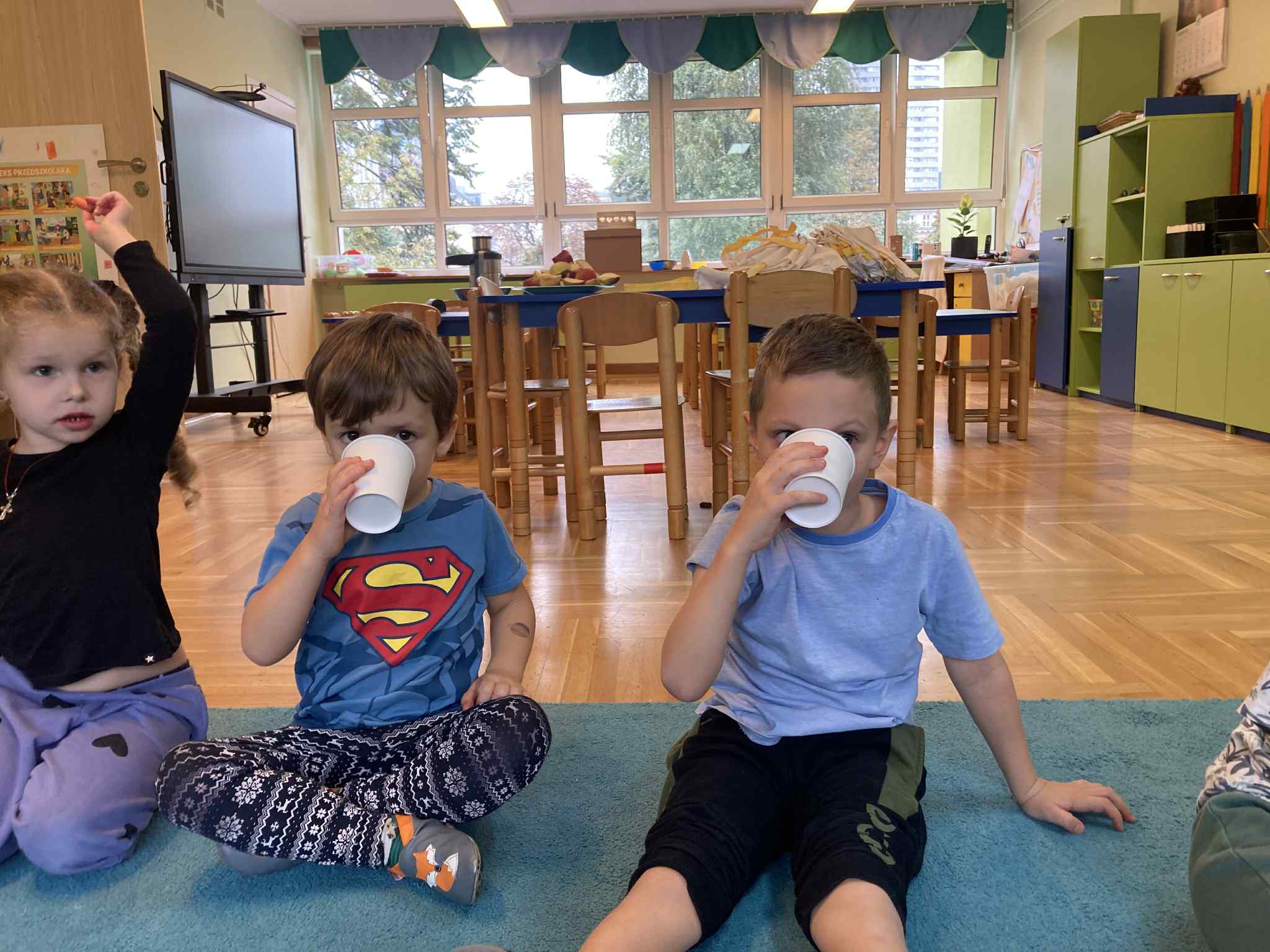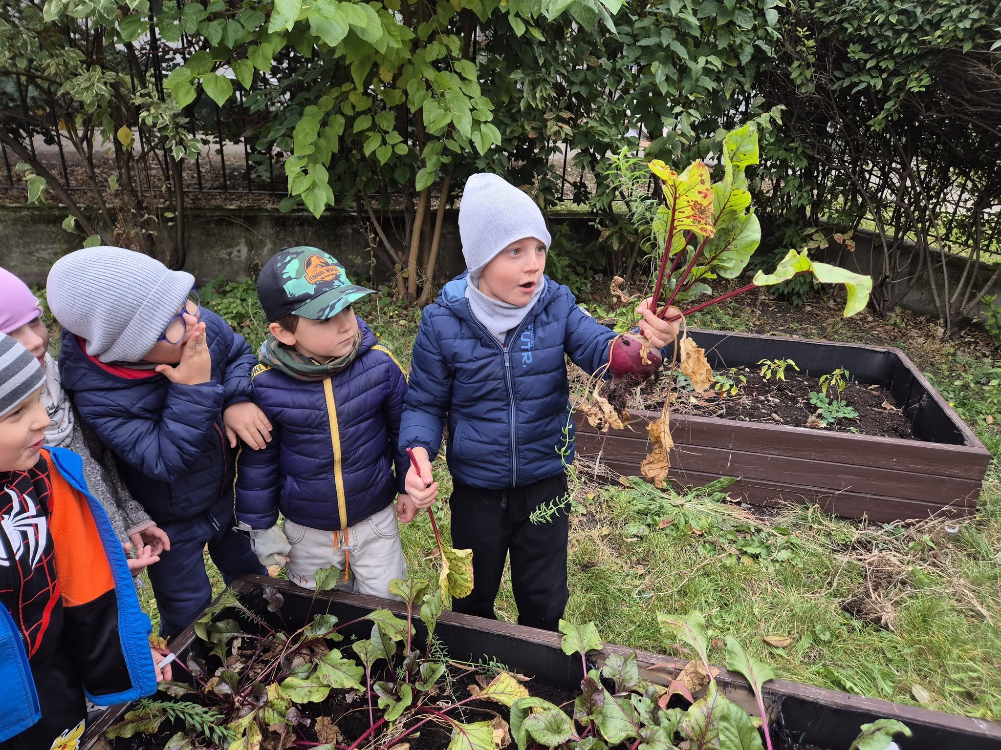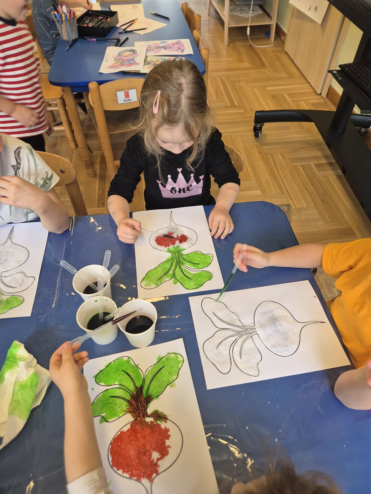 Nie zabrakło też eksperymentów w kuchni – samodzielnie przygotowaliśmy sok z buraka! Było trochę emocji, trochę śmiechu i mnóstwo czerwonych rąk (i ust ). Po degustacji pojawiły się najpiękniejsze buraczkowe uśmiechy, które trudno było zmyć, ale łatwo było pokochać!